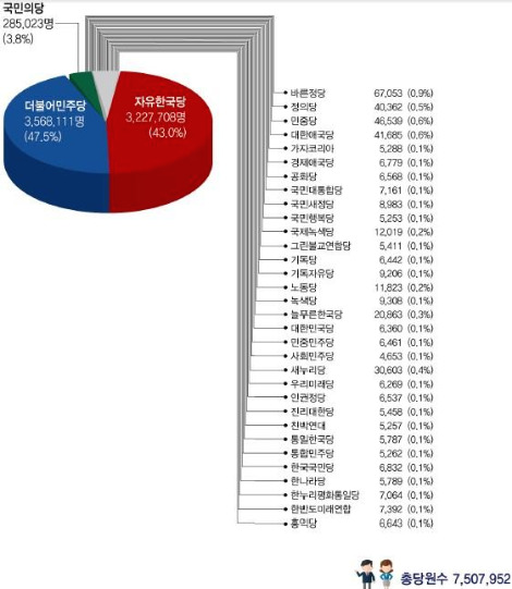 2017년 기준 (출처 : 중앙선거관리위원회 정당의 활동개황 및 회계보고)