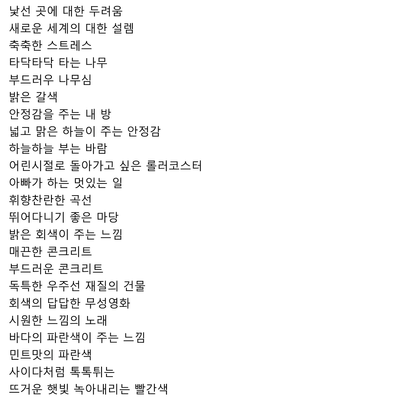 가치 나열: 건축에서 가장 중요하다고 여기는 철학적 개념들을 글로 정리했다.