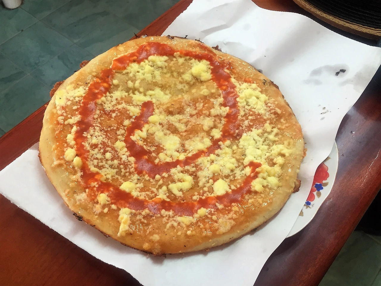 그 다음으로 시도한 현지인 음식은 피자였다. 역시 카페테리아 중 한 곳이었는데, 커피를 마실 요량으로 들어갔다가 피자를 먹는 사람들이 많길래 '현지인 피자 맛집인가' 싶어 우리도 하나 주문해보았다. 커피 맛은 그런대로 괜찮았다. 몇 백년 동안 스페인 식민지였기 때문인지 미국식 브루잉보다는 에스프레소를 마시는 방법이 더 대중적인 것 같았다. 약간의 에스프레소와 설탕을 섞어 크레마를 내고, 거기에 에스프레소를 마저 부어 마시는게 쿠바 스타일이다. (쿠바 샌드위치는 허상이었지만, 쿠바 커피는 기존의 상상과 비슷했다. 매우 달다.) 그러나 완성되어 나온 치즈피자의 비주얼에 이번에도 우리는 낙담할 수 밖에 없었다.