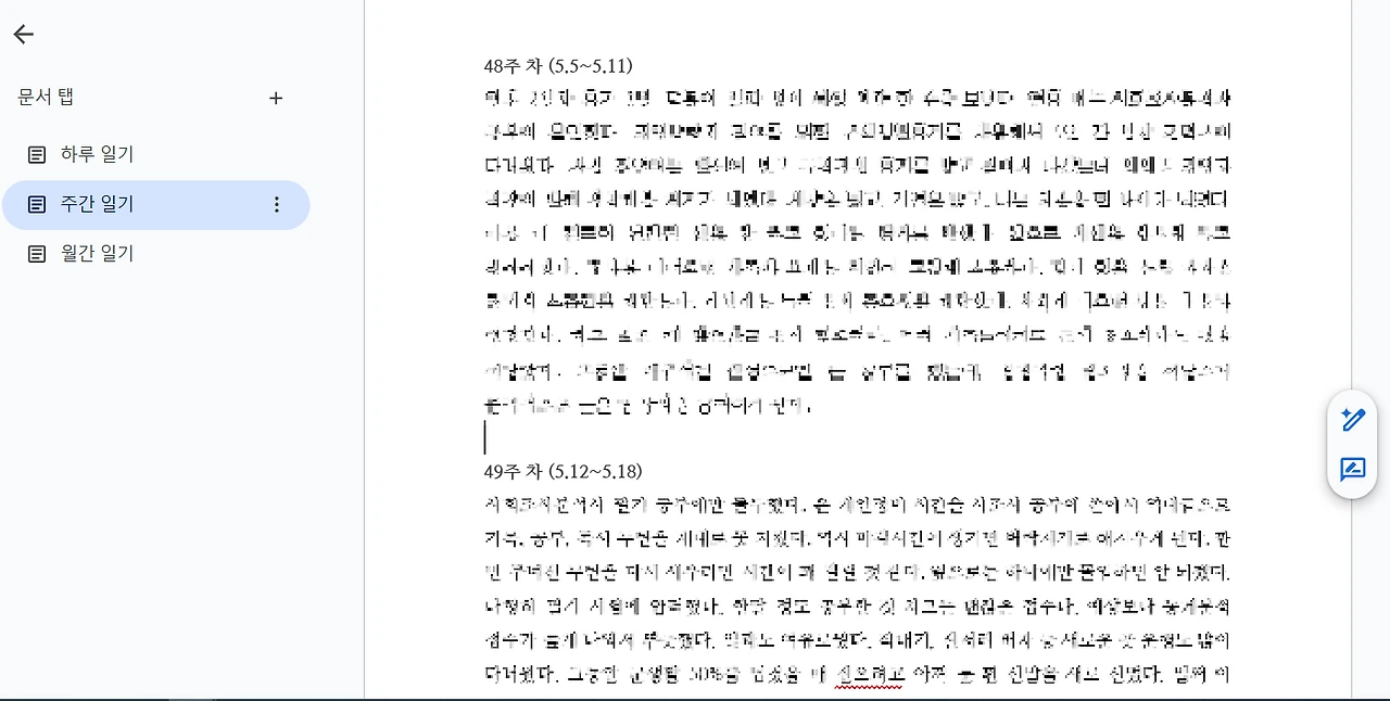 자대배치 후에는 노트 대신 구글 독스(온라인)를 사용하기 시작했다. 종이에 쓸 때보다 빠르고, 나중에 검색도 가능했다. 중요한 건 형식이 아니라 ‘매일 쓰는 루틴’이었다. 매일 한 가지 같은 행동을 반복한다는 것은 놀라운 힘을 만든다. 그것이 바로 복리의 힘이다. 10분의 일기가 100일이 지나면 1,000분의 자기 성찰로 바뀐다.