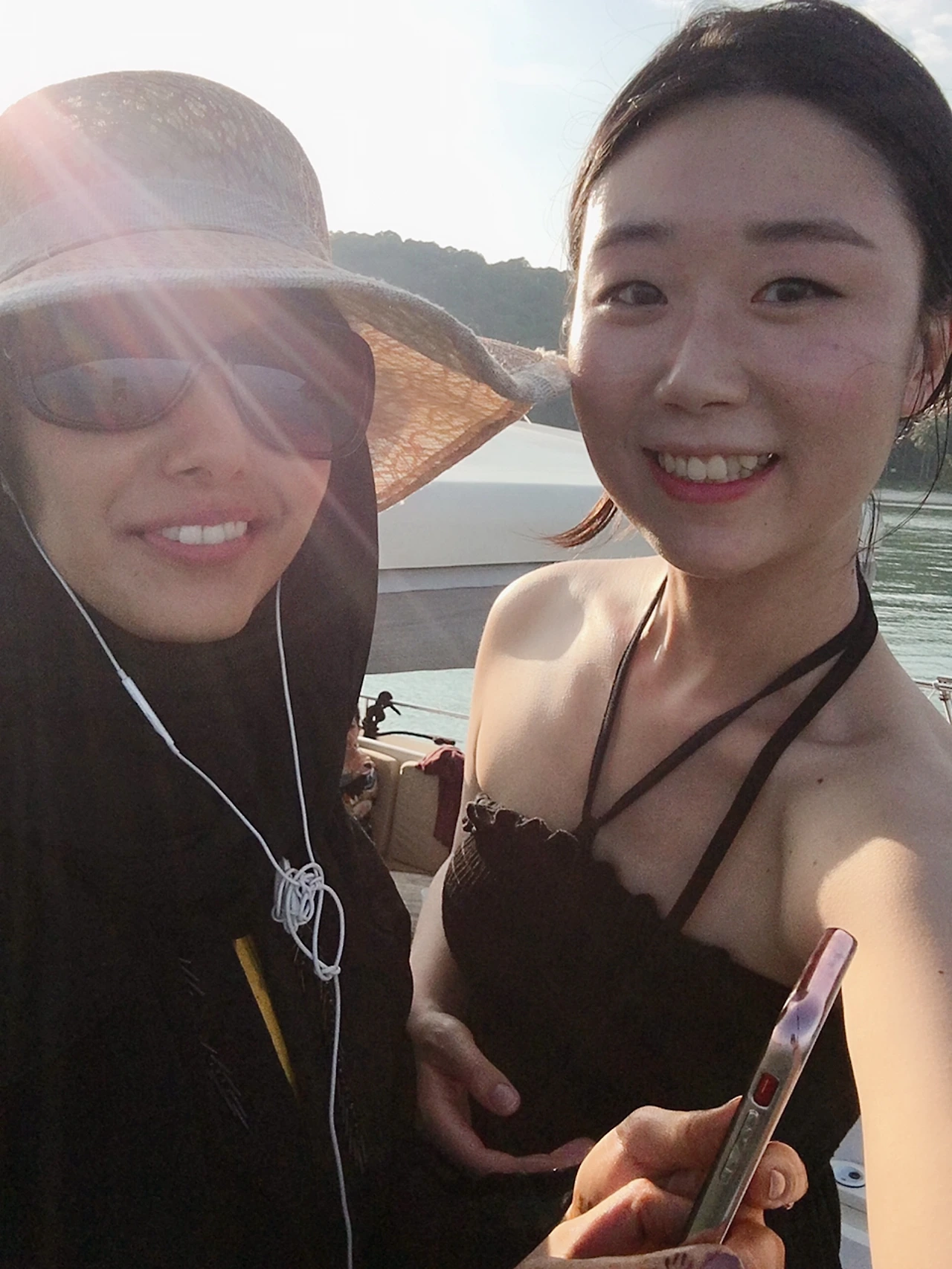 갑판에는 아까의 그녀가 혼자 서 있었다. 그 중동남자는 보이지 않았다. 그런데, 내가 올라오자 그녀는 갑자기 엄청 반가운 표정을 지으면서 자신의 아이폰을 내밀었다. 포토 포토! 찍어 달라는 건가? 잠깐 그렇게 생각하는데 그녀는 내 옆에 와서 팔짱을 끼고 셀카를 찍었다. 오호, 그렇다면 나도. 나도 내 껄로 찍겠다고 했더니 그녀는 기꺼이 내 셀카에 응해주었다.