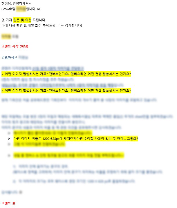 담당자님은 내가 보낸 메일 내용 하나 하나에 밑줄을 긋고 질문을 하였다. ‘어떤 이미지를 말씀하시는 거죠?’, ‘제가 이해한 건 이러 이러한데 이게 맞나요?’ 회신을 읽고 얼굴이 빨개졌다. 쥐구멍으로 숨고 싶었다. 나름 열심히 썼기 때문에 그런 것도 있었지만, 더 중요한 건 일을 두 번 하게 될 담당자님께 너무 죄송 했기 때문이다. 담당자님께 다시 메일을 보냈다. 이건 이거구요, 저건 저래서 저렇습니다. 죄송합니다. 조금만 더 신경 써서 한번에 잘 보내면 될 걸. 후회가 밀려왔다.