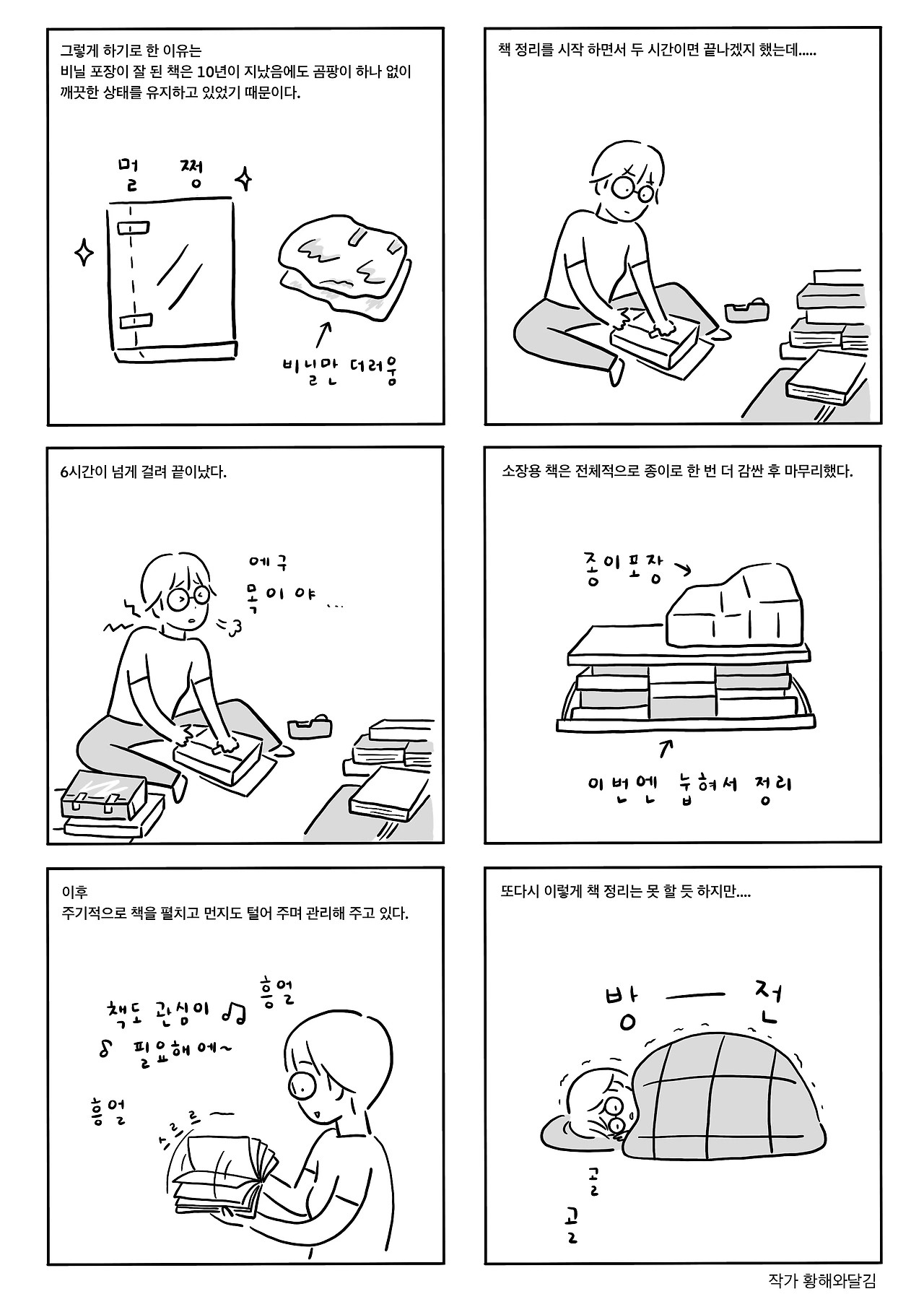 그 덕에 2시간이면 끝날 줄 알았던 책 정리는 6시간이 넘게 걸렸다.
