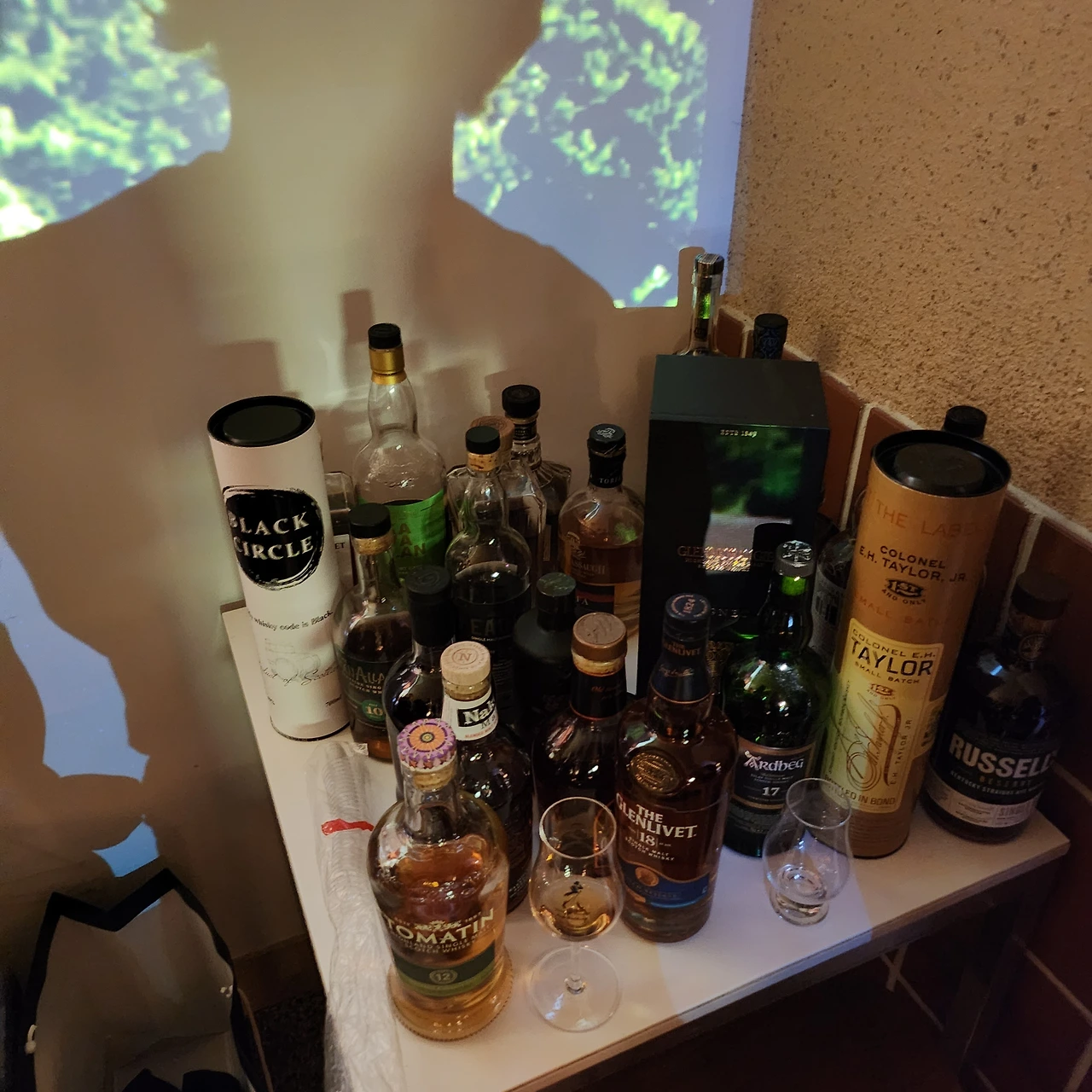 3) 참여자들의 준비물 : 제대로 된 테이스팅을 위한 필수 준비물은 역시 물과 잔이다. 당연히 본인이 가져오는 술 포함. 모임 장소에서 많은 잔을 준비하기 어려운 경우에 잔을 개인이 지참하는 경우가 많은데, 모임 장소에 따라 준비물이 달라질 수 있다. 작가는 애용하는 잔 하나를 꼭 지참하는 편이다. (주야장천 하나만 애용하는 애착위스키잔)