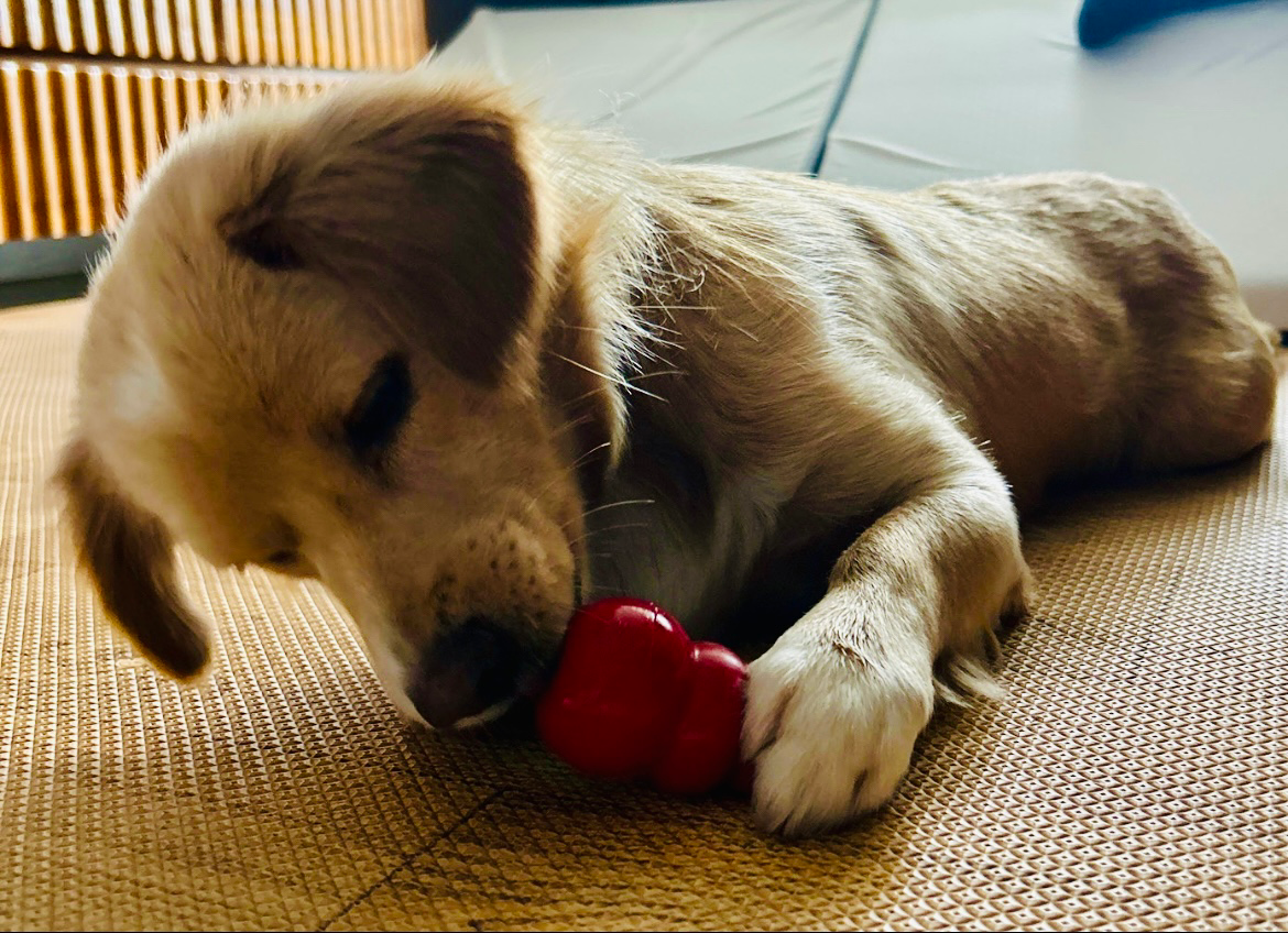 얼마 뒤, 유명 수의사가 추천한 방법 덕분에 간식을 준비하느라 바쁜 아침에서 벗어났다. Kong이라는 장난감에 불린 사료를 채워 넣고 얼린 후, 다음 날 아침에 내어 주면 실온에 서서히 녹기에 네가 간식을 천천히 먹을 수 있게 됐다. 적은 양의 간식으로 낮 시간을 보낼 수 있으니 너도 다이어트에서 해방되었다.