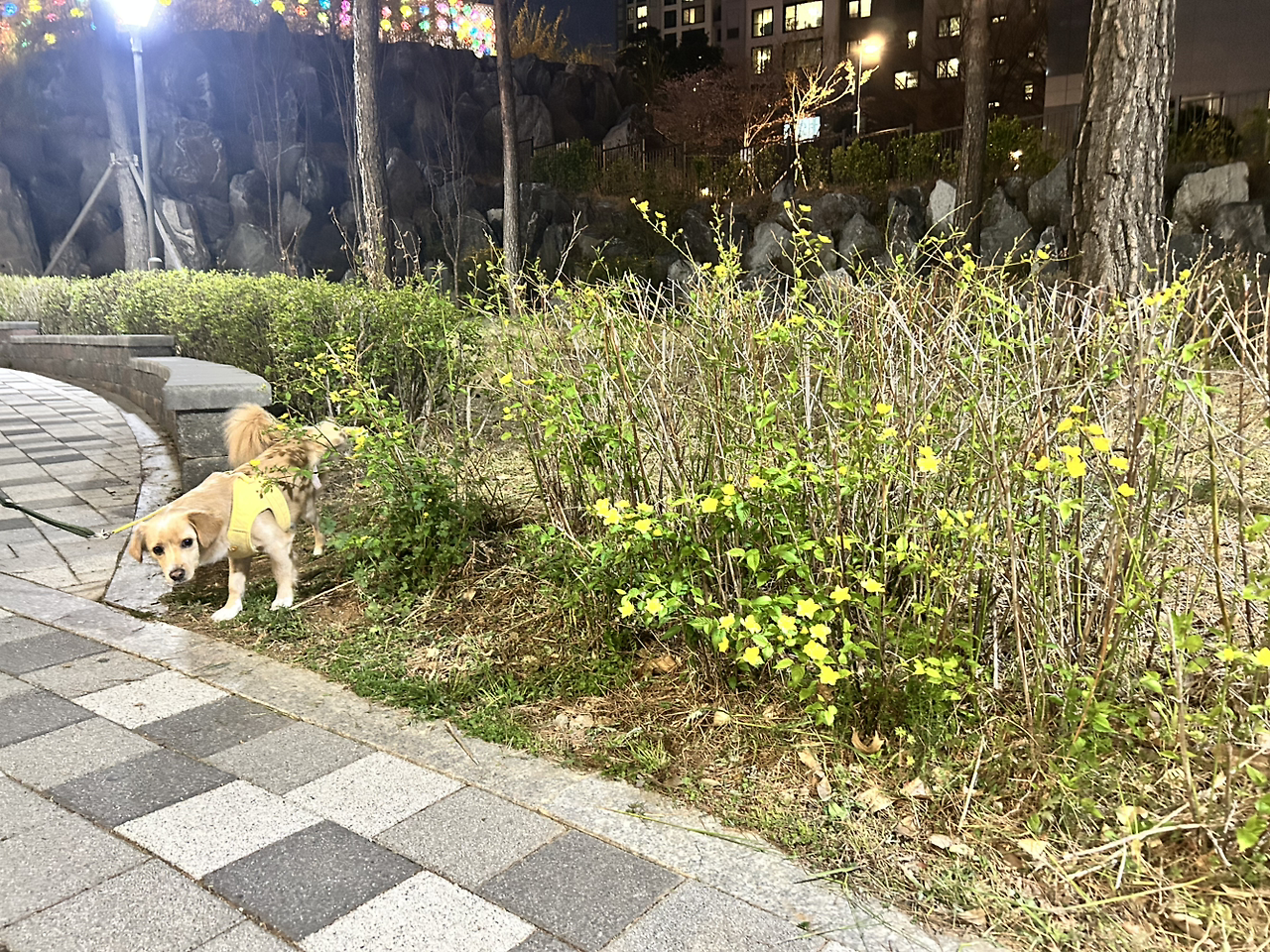 강아지와 꽃길을 걸으며 똥을 줍는다.