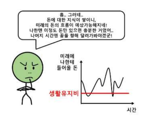 돈에 대한 지식으로 자기 삶에서 벌어질 돈의 흐름이 수치적으로 예상이 된다면 ‘월 1000만원을 벌면 나중에 행복해지겠지?’라는 막연한 생각이 다음과 같이 바뀌게 됩니다.