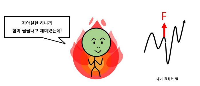 이렇게 자아실현으로 주체적인 삶을 살기 위해선 나만의 내적동기가 필요합니다. 내적동기는 누구에게나 있습니다. 다만, 그것이 바람 앞의 촛불 같아서 금방 꺼져버리니, 나한테 그런 게 있었는지조차 헷갈리는 게 문제입니다. 그래서 한 개인의 삶에 자아실현이라는 씨앗이 심어질 때까진 내적동기를 꺼트리는 주변의 바람을 막아내는 것이 중요합니다.