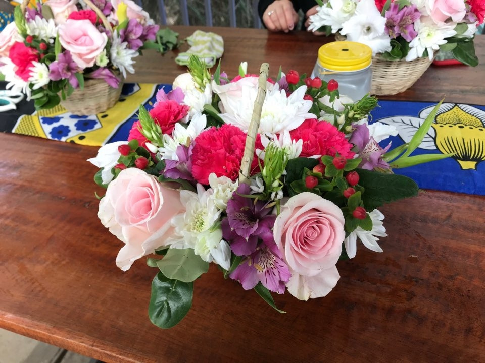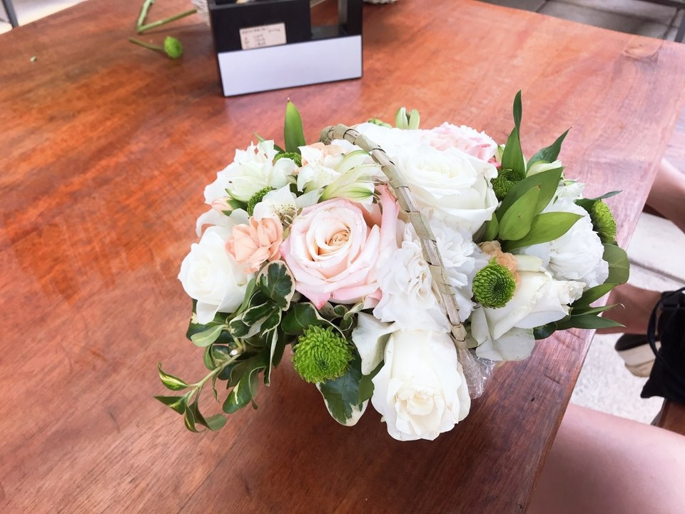 그런데 여기서 오는 말로 설명하기 어려운 무언의 평화가 있다. 작은 칼로 오아시스(꽃을 꼽는 초록색 스펀지)를 사각사각 잘라내고, 꽃줄기를 톡톡 끊어내고, 중심이 맞나-보면서 한 송이 한 송이를 조심히 꼽을 때 오는 그 마음의 평화가 있다. 내 꽃에 집중하느라 다른 사람의 꽃바구니는 쳐다보지도 못했다.
