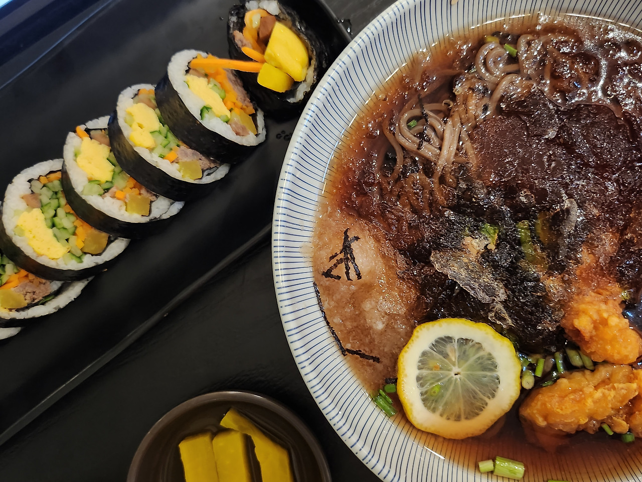 고등학교 3학년 때 하던 짓을 나이 삼십 먹고서도 하고 있다니. 탑승시간까지 얼마 남지 않으니 강의가 귀로 들어가는지 코로 들어가는지 모르겠다. 지금 내 입으로 들어가는 냉메밀과 김밥이 더 인상 깊다. 사람의 3대 기본 욕구에 왜 학구욕이 포함되지 않는지 다시 한번 깨닫는 순간이다.