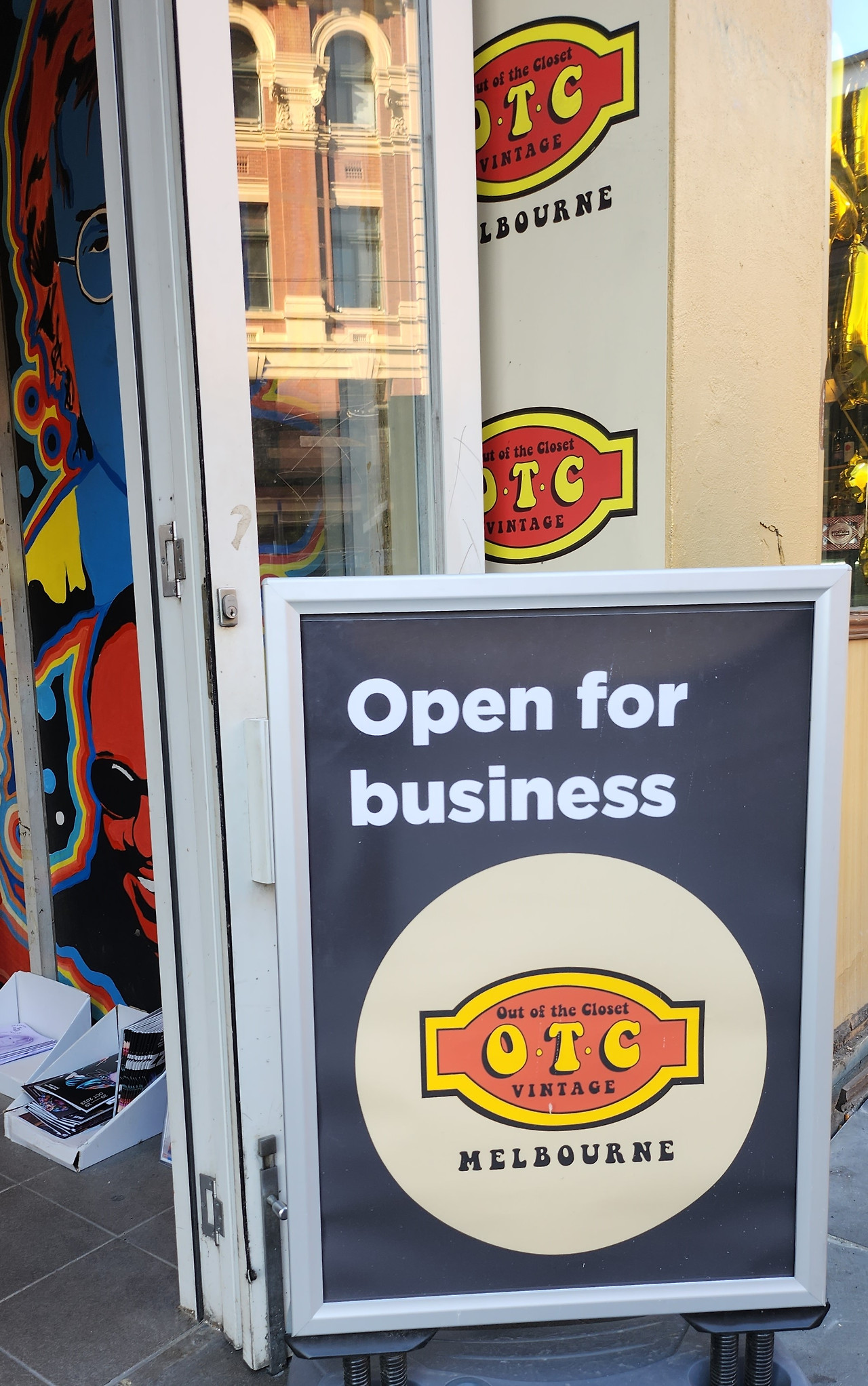 사진을 찍고 길을 걷던 도중 한 가게가 눈에 들어온다. 노란 간판에 뭉글뭉글한 글씨체로 적힌 OTC라는 글자. Out Of the Closet의 줄임말이다. 지하로 이어진 계단을 걸어 내려왔다. 많은 빈티지 옷들이 전시된 것 마냥 걸려있다. 벽에는 수많은 포스터들이 붙어 있어서 옷들이 마치 작품처럼 보이는 효과가 있다.