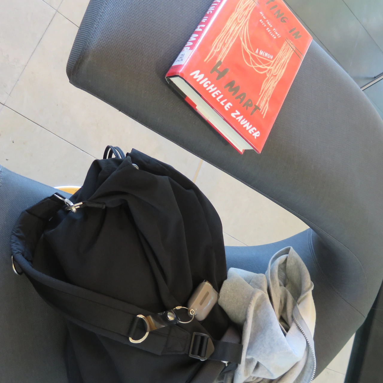 여러 자리들 중 가장 독특하게 생긴 의자에 앉았다. 일체형 테이블 겸 소파다. 회색의 푹신함에 기대어 도서관 신간 목록에 있던 책, Michelle zauner의 『Crying in H Mart』를 펼쳤다. 한국에서도 읽고 싶어서 언젠가 읽을 목록으로 저장했는데, 전자책 구독 서비스에서는 전문을 읽을 수가 없어서 의도치 않게 아껴 둔 책이 되어버린.