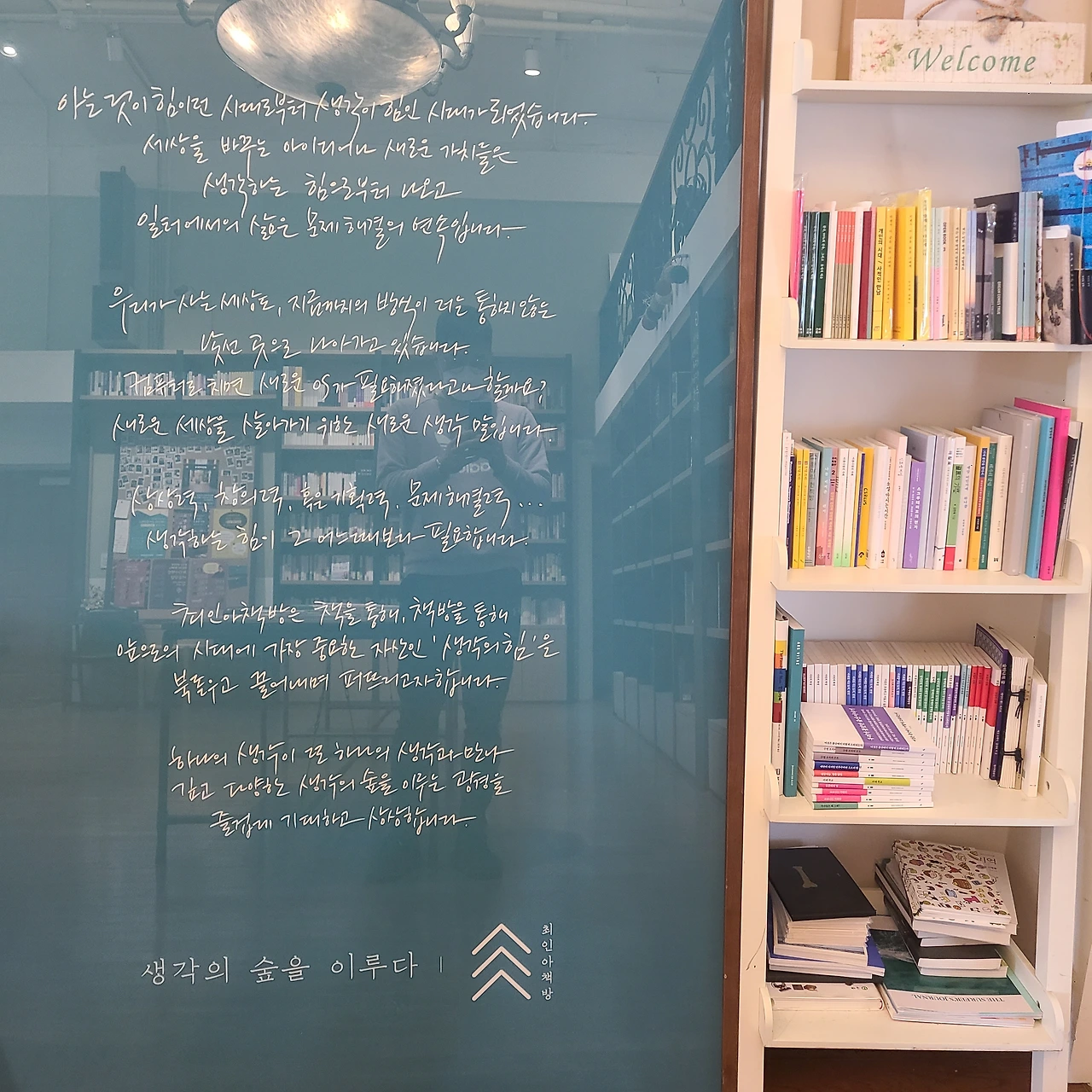 잠시 후 최인아 책방에 도착했다. 점심 때라 책방에는 손님 세 명 밖에 없었다. 책방은 조금 큰 서점 느낌이었고, 높은 천장에 벽장식 책장은 천장 끝까지 높게 뻗어있었다. 복층형으로 2층에서 책방이 한눈에 들어오는 구조였다.