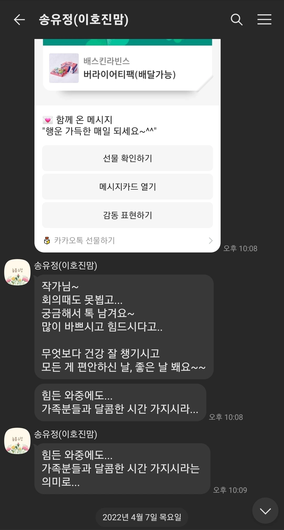 글 보다 긴 댓글을 받는 브런술도 있다. 엄청난 댓글을 몇 번 받았는데, 이번 기회에 커밍아웃한다. 사실 브런치 작가 중 로*, 늘*유정, 좋*니, *영경, *라빠 작가들에게 내가 먼저 댓글을 써달라고 접근했다. 뒤로 일정 상품을 상납하고 댓글을 산 것이다. 내가 주도했는데 지금 계절과 어울리는 뭐 작가는 며칠 전 상부상조하자며 역으로 아이스크림까지 선물했다. 증거로제시한다.