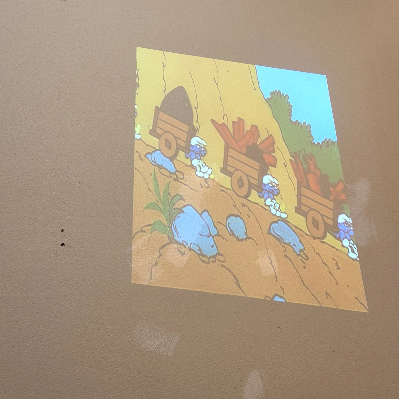 여하튼, 가게 이름이 두웅둥인데, 구름이 둥둥 떠다니는 모습을 사랑스럽게 표현했다. 나와 둘째는 은율을 잘못 이해해서 넷플릭스 영화 시리즈가 시작할 때 나오는 두둥으로 계속 읽다가 아내의 오랜 지적과 반복 숙달을 통해서 최근에서야 두웅둥으로 정확하게 따라 읽을 수 있게 되었다. 며칠 전 두웅둥을 방문했을 때 가게 한쪽 벽면에 무성 애니메이션을 틀어놨는데, 반가운 스머프였다.