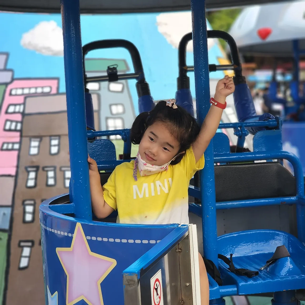 하늘에 잠시 멈추면 부모들은 구름과 자녀의 사랑스러운 모습을 보고 연신 사진을 찍는다. 그게 다다. 가끔 겁에 질려 울음을 터트리는 아이도 있었지만, 대부분 좋아했다. 다행히 둘째는 울 정도는 아니었지만 긴장한 표정이 역력했다. 평소 강한 척 하지만 겁이 많았고 다른 놀이기구로 인해 저기압이었기때문인데, 불안감이 커지기 직전 천천히 내려왔다. 편안함을 느끼고 자신감을 얻은 둘째 얼굴은 밝아졌다.