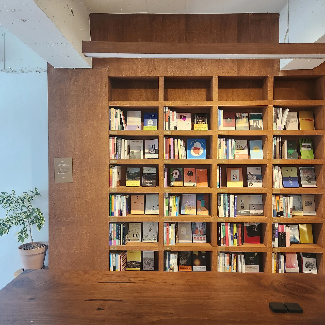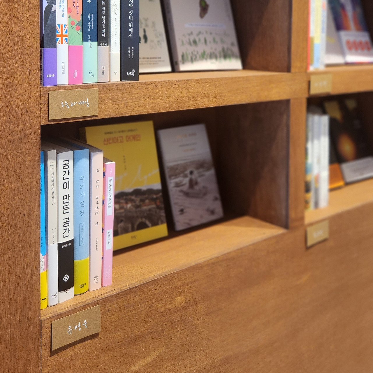 *** '죽은 자의 집청소, 김완', '네 컵은 네가 씻어, 미지', '쓰는 기분, 박연준', '조금 긴 추신을 써야겠습니다, 한수희' 등유명 작가님들과 함께한 추억이 가득합니다.물론, 모든 순간을 글벗과 함께했지요. 새로이 만든 공간에는 작업인과 작가님들이 추천한 책을 구경하는 재미까지 더해졌네요. 책 구경을 좋아하는 저에게 이보다 좋을 순 없습니다. 이유는 모르겠는데, 유독 가장 낮은 곳에서 밝게 비추는(炳旭) 공간에 제 시선이 계속 머무릅니다.