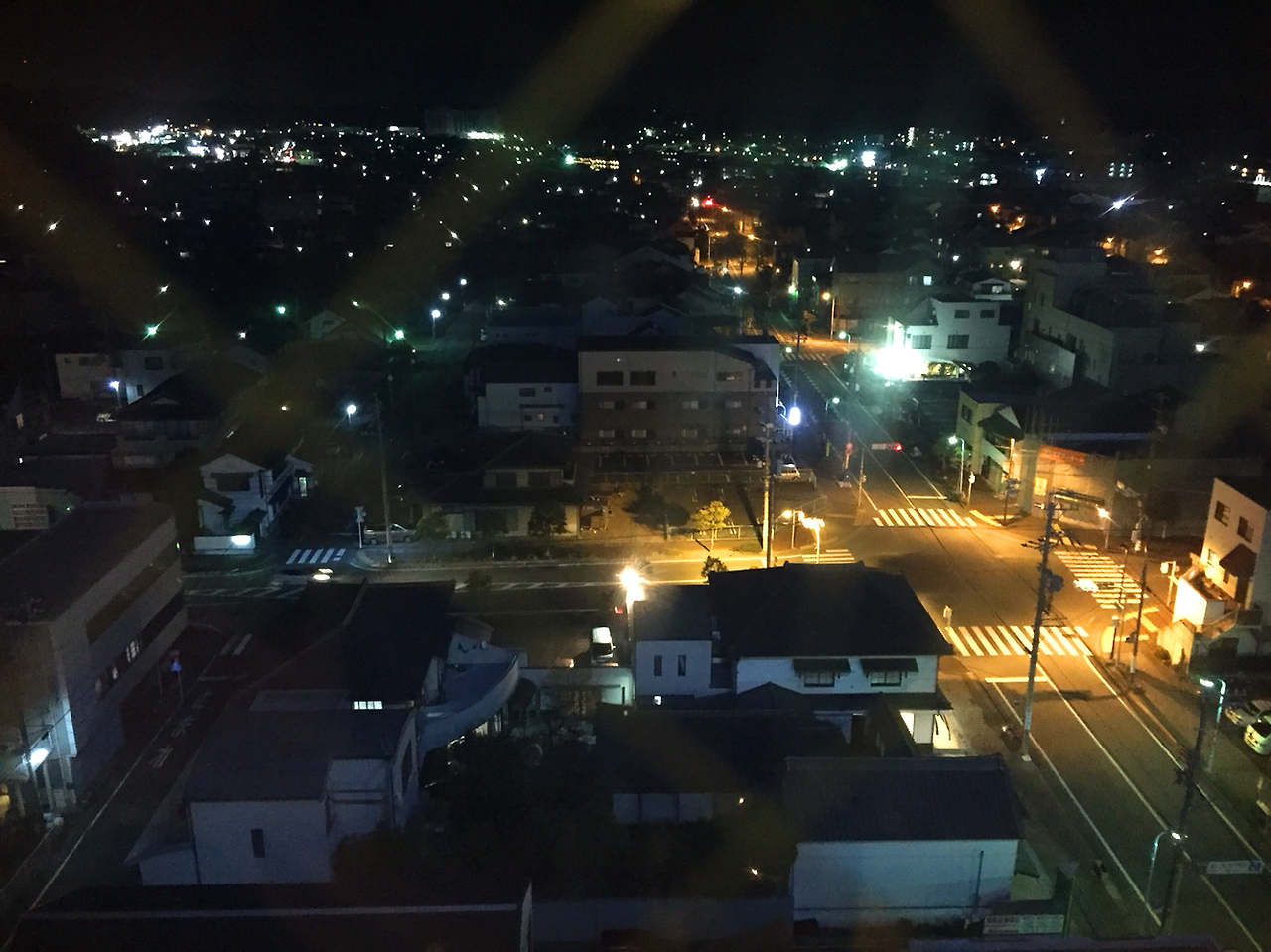 동네는 13층에서 봐도 까마득히 낮다. 집들은 전부 한두개층. 까만 지붕이 주욱 늘어선 길. 도로에는 차가 거의 없다. 불빛이 드문드문. 고즈넉한 일본의 한 마을. 새해 복 많이 받으세요, 모두.