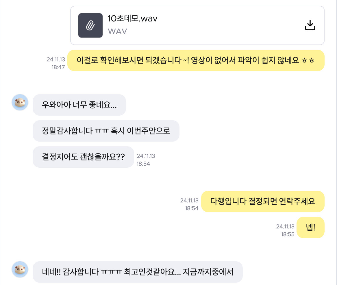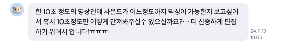 마치 플러그인이나 프로그램 데모처럼 감독님께서 보내주신 사운드파일 (보통 10초~30초 정도?)을 가지고,