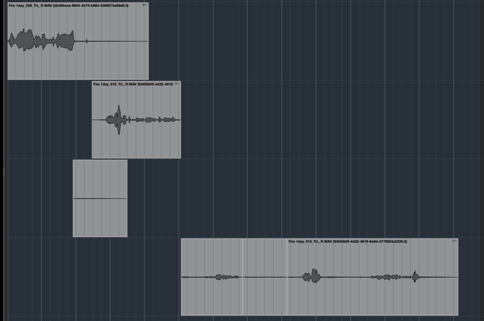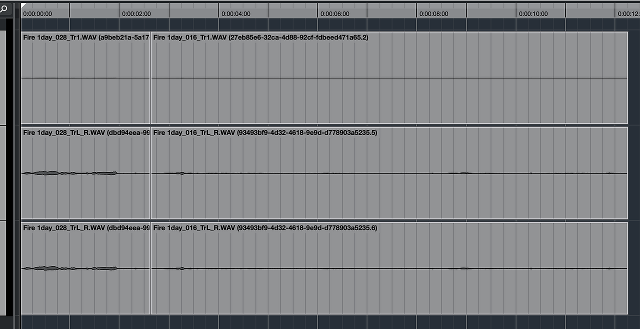 트랙이 3개인 것은 경험상, 동시녹음 당시에 트랙 생성 3개를 하는 레코더(데이터 날라가면 작살나는 영화 현장 특성상 동일한 파일에 대한 백업기능이 있는 레코더가 다수이다.) 를 사용했기 때문인데 이건 들어보면서 위상이 틀어지는지 확인해야 한다.
