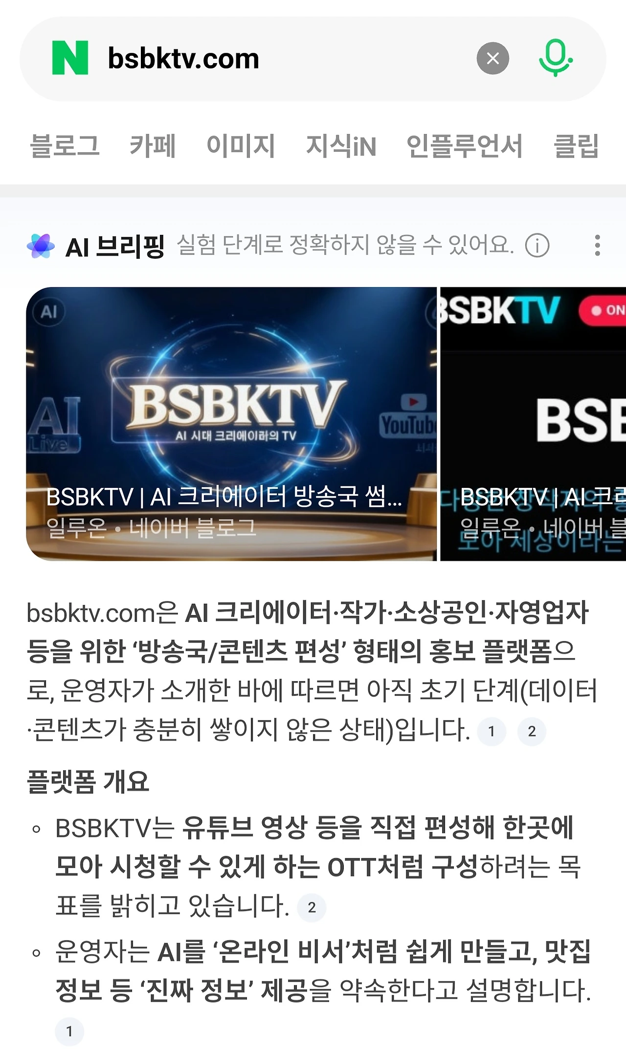 네이버 AI는 BSBKTV를 '공식적인 방송국 플랫폼'으로 정의했고,
