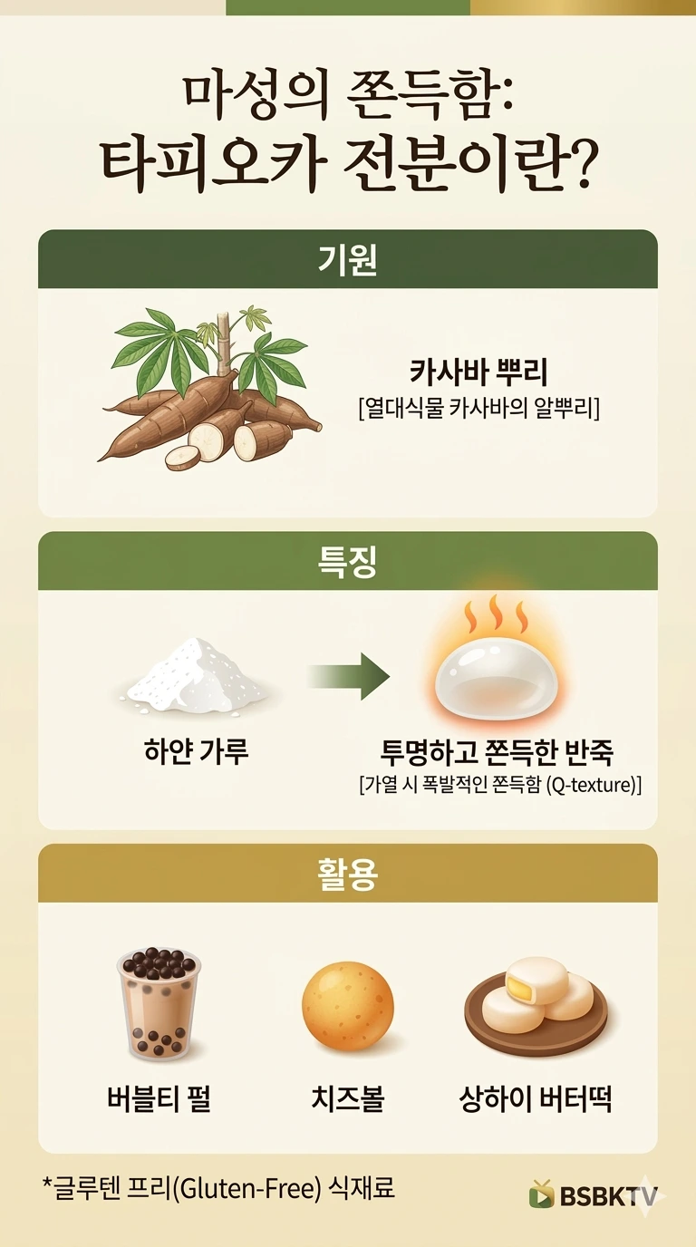 이 폭발적인 쫀득함(Q-texture)이 버블티 펄, 치즈볼, 상하이 버터떡 같은 디저트의 식감을 만드는 핵심입니다.