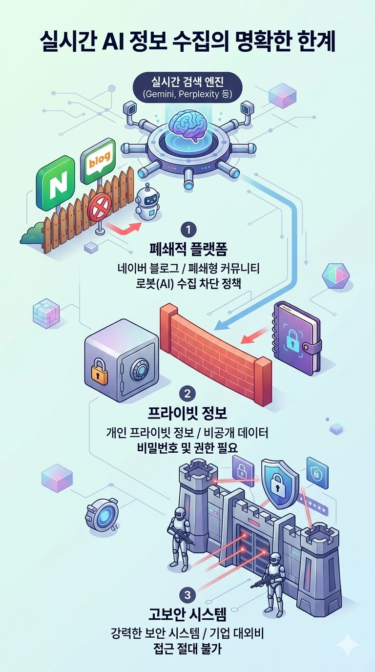 게다가 AI가 실시간 검색을 지원한다고 해도 긁어올 수 있는 정보에는 명확한 물리적 한계가 존재한다.