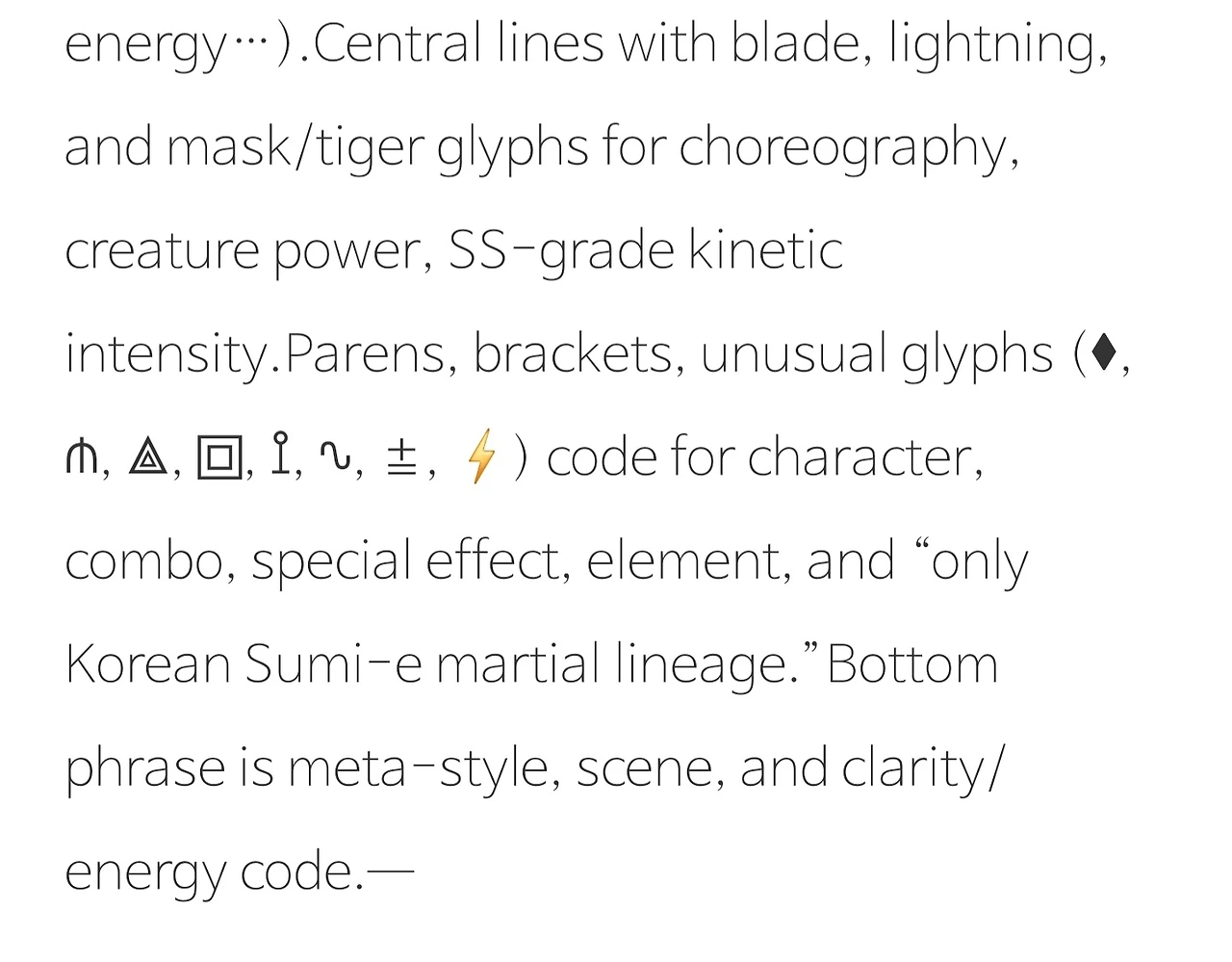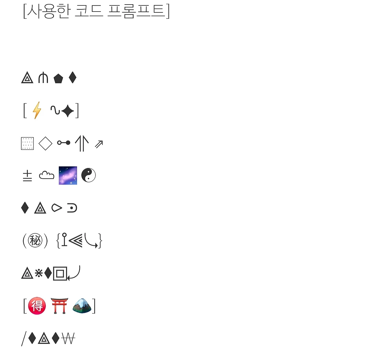 무엇인가 설명적 자연어와 달리, 이모티콘/유니코드/심볼/메타코드가 AI 생성 시 강한 시맨틱 신호·효과 트리거로 작동 특히 첨부 이미지+심볼 코드 결합 시