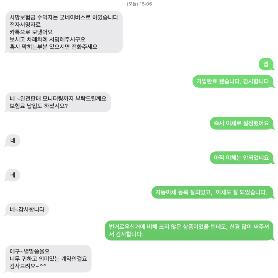 상담해준 보험설계사분과 저. 모두에게 기분 좋은 경험이었습니다