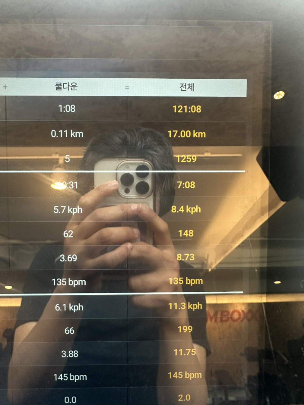 120분을 5분 남겨두고 미친 듯이 전력으로 뛰어봤다. 조금이라도 더 채워보려고 달려봤다. 그리고 마지막 30초까지 야무지게 채워 마침내 17km와 121분의 달성!