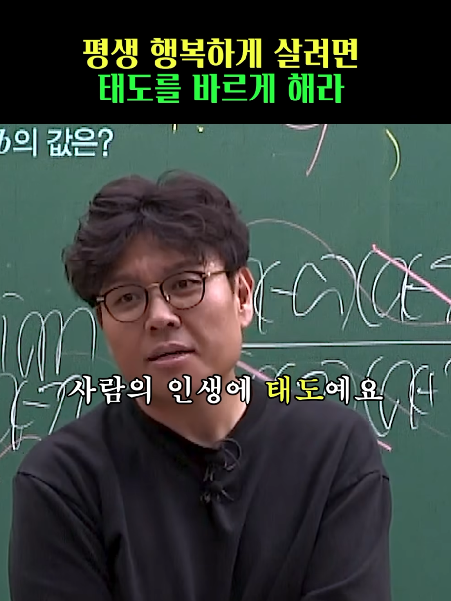 [평생을 행복하게 살려면 태도를 바르게 해 봐. 삶을 마주하는 태도. 사람들은 다 재능, 운은 얘기하지만 왜 태도를 얘기 안 하는지 몰라. 압도적으로 영향력이 큰 거는 사람의 인생의 태도에요. 사람들을 대하는 태도. 일을 대하는 태도. (...) 뭐가 선이고 뭐가 악이라는 얘기가 아니라, 태도에 따라서 인생이 바뀌어요. 모든 것을 이기는 것. 학벌도 이기고, 집안 내력도 이기고, 재산, 부모님의 능력. 다 이길 수 있는 것은 태도 하나밖에 없어. 그걸로 천하무적이 돼요.]