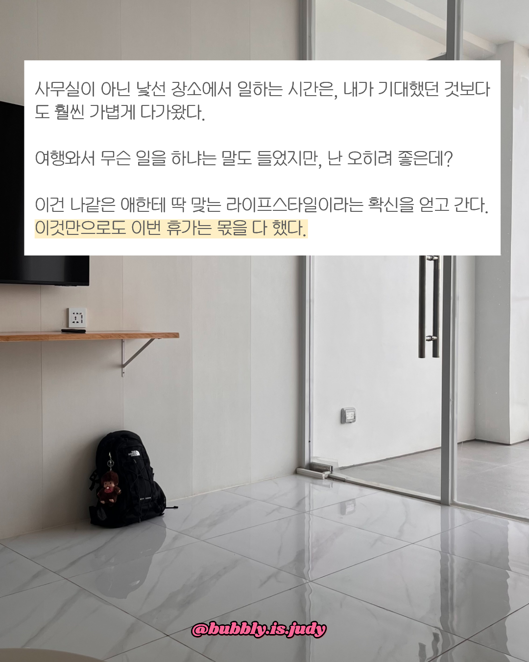어느새 휴가 2주 차, 나는 필리핀 바탕가스에 있는 한 리조트에서 여유를 만끽하고 있었다. 눈앞에 펼쳐진 새파란 오션뷰를 보며 해야 할 일을 모두 쳐냈으니, 이제는 내 자유를 즐길 시간이다.