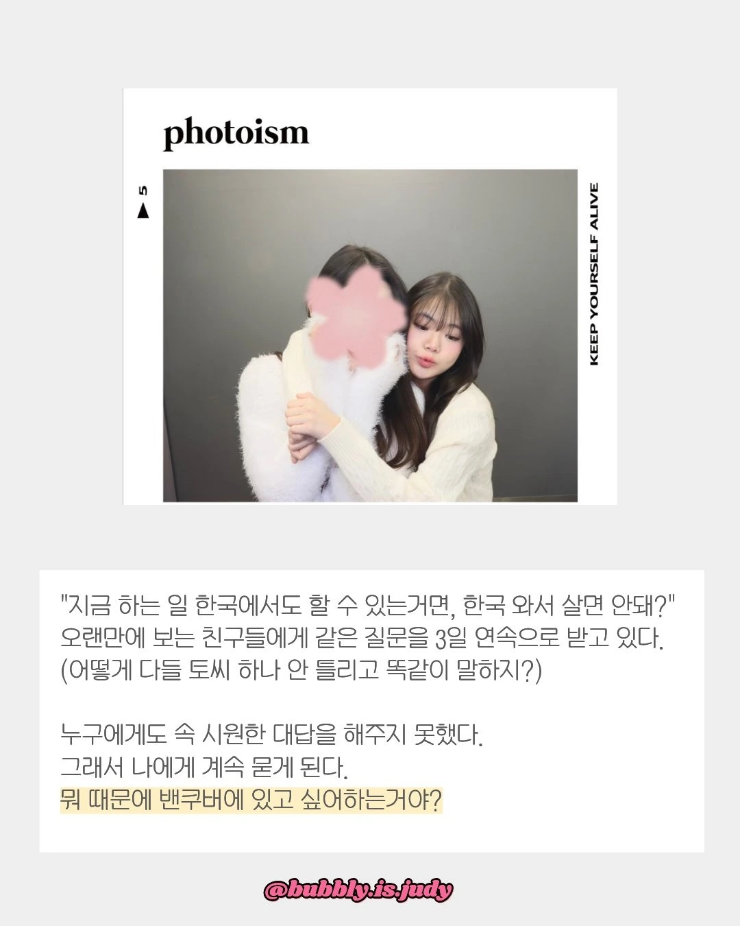캐나다에서 일을 시작한 지 1년 4개월 만에 첫 휴가를 다녀왔다. 휴가라고 일을 아예 놓지는 않았지만, 3주 동안만큼은 '일하는 나'보다, '그냥 나'로 보낸 시간의 비중이 훨씬 컸다. 이렇게 온전한 나로 존재하며 내 시간이 많아질 때면 재밌는 일이 생긴다. 평소라면 그냥 지나치고 말았을 마음의 소리가 유독 또렷하게 들린다는 점이다. (내가 여행을 좋아하는 이유이기도 하다.)
