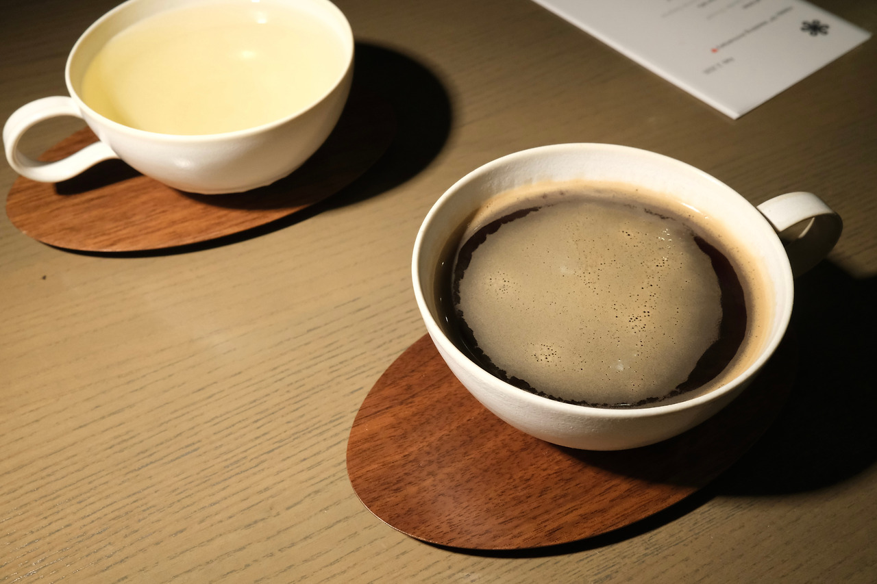 음식이 다 끝나고, 디저트 차례가 되자 차와 커피 중 원하는 걸 고를 수 있었다. 남편은 자스민 티, 나는 커피를 골랐다. 모수의 커피잔은 보기에도 예쁘지만, 커피를 마시기 위해 잔을 입게 가져다 댔을 때 입술에 닿는 그 감각이 너무나 완벽했다. 이걸 뭐라고 표현해야 하나. 손에 쥐었을 때의 느낌이 좋으면 그립감이 좋다고 하는 것처럼, 이것도 뭔가 표현하는 말이 있을 것 같은데 내 언어가 짧아 그 느낌을 적확한 단어로 표현하지 못하는 게 심히 안타깝다. 아무튼 입술에 닿는 그 느낌이 너무 좋아서 컵을 판매하면 그게 얼마든 당장 하나 사 오고 싶을 정도로 탐이 났다.