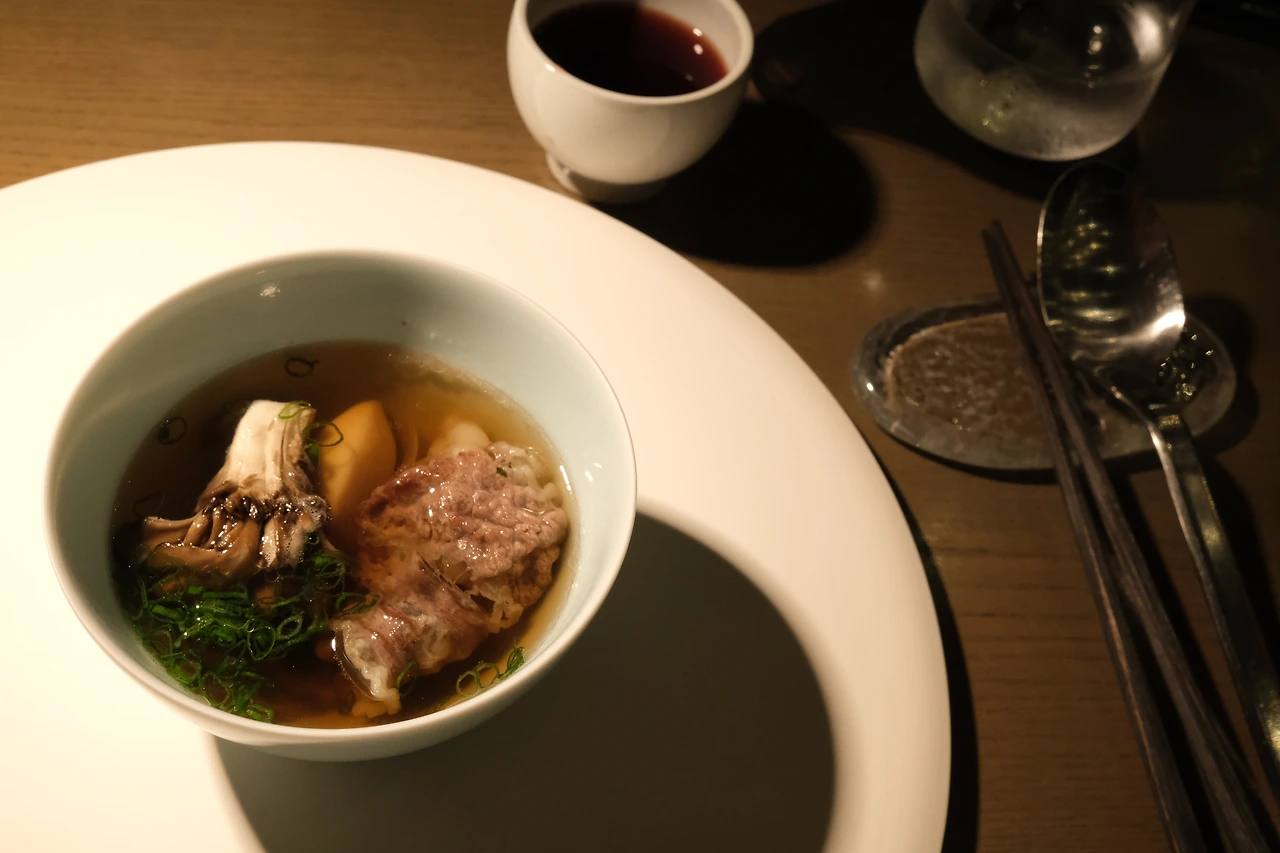 차돌박이 국에는 따로 페어링 되는 와인은 없지만, 소믈리에 분께서 복분자주를 함께 준비해 주셨다. 한국인들만 느낄 수 있는 차돌박이와 복분자의 소울에 웃음이 났다. 차돌박이 국은 너무나 제대로 한국적인 맛. 차돌박이의 굽기 너무 완벽하고, 이름도 예쁜 잎새 버섯은 향도 너무 예쁘고, 예쁘게 깎아놓았지만 내가 싫어하는 토란까지 너무 맛있었다. 나는 잎 안에서 뭉개지는 식감 때문에 토란을 싫어하는데 이건 뭘까. 왜 뭉개지지 않는 걸까. 이쯤 되니 안성재 셰프님께서 내 입맛에 맞춰 음식을 준비해 주신 게 아닐까 하는 착각이 스물스물…