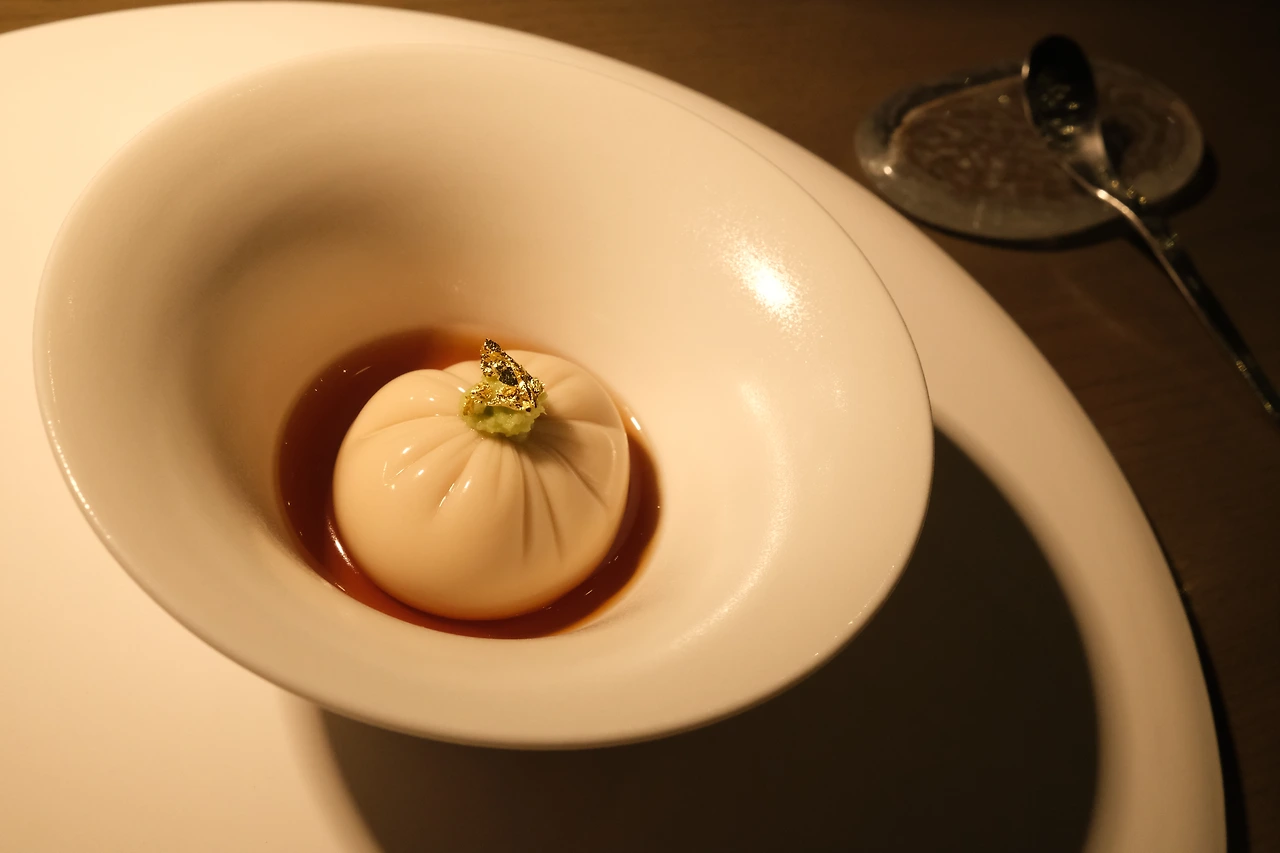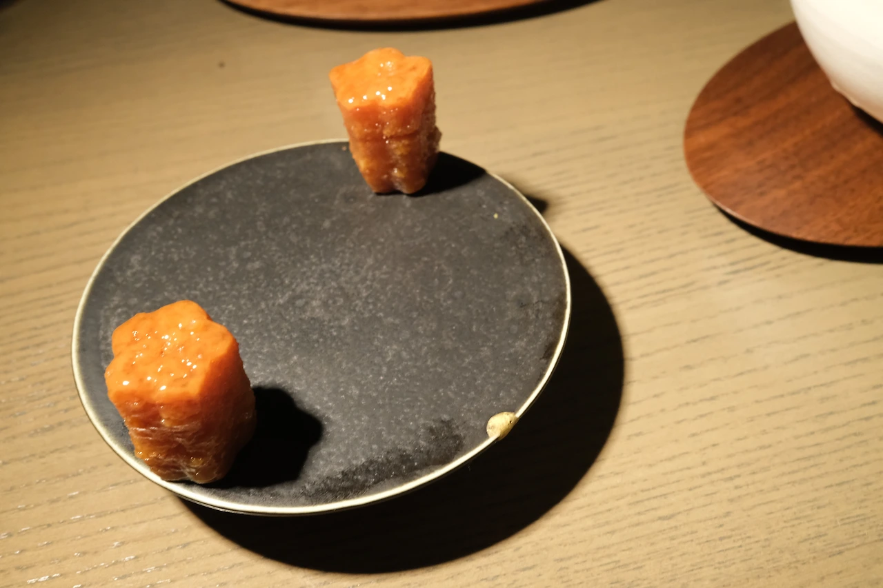 참깨로 만든 두부 속에 우니가 들어있다고 해서 약간 걱정도 됐지만 기대도 됐다. 우니라니, 평소 같았으면 남편 주고 나는 쳐다도 안 봤을 텐데 여기선 그럴 수 없지. 기대 반 설렘 반으로 한 입 떠서 입에 넣는 순간, 입 안 가득 퍼지던 웃음의 맛. 여기서는 어떤 재료에 대한 호불호가 크게 중요하지 않은 것 같단 생각이 들었다. 그냥, 알레르기만 없으면 오케이. 비린 맛 하나 없이 부드러움과 고소함의 향연 속에 정신을 못 차리고 있을 때 함께 페어링 된 준마이 다이긴조 사케를 한 모금 마셔주면, 이곳이 바로 천국.