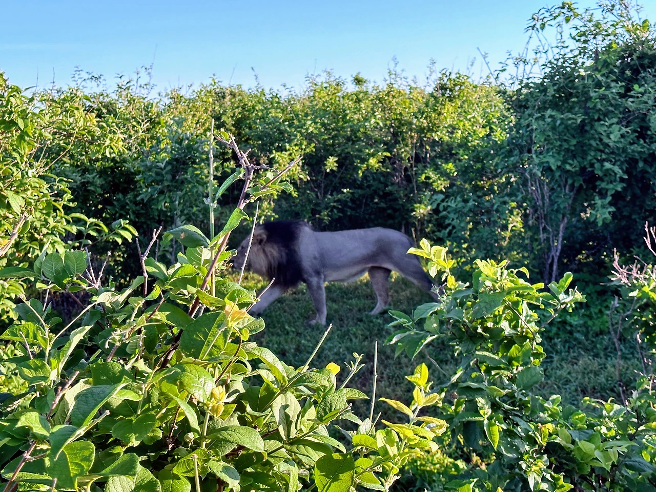 사자가 포효를 멈췄다. 이 지프가 성가셔도 위협은 아닌 것 같았는지, 우리에게서 시선을 거둔 그가 천천히 길을 건넜다. 우리도 시동을 걸고 그의 뒤를 따라갔다. 사방을 둘러보아도 지프라고는 아직 우리뿐이다.