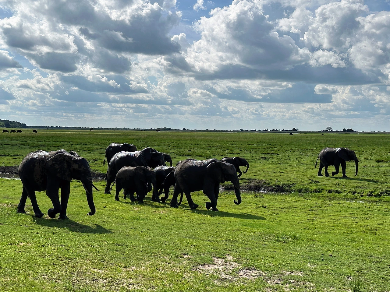 평생 볼 코끼리를 다 봤다더라 하는 말이 과하지 않게, 초베엔 정말이지 코끼리가 많았다. 앞발로 질긴 풀을 살살 뜯어 코로 감아올리는 모습, 제법 높은 나무의 잎을 절묘히 훑는 모습, 코로 진흙을 몸에 문질러 목욕하는 모습, 강가에서 물을 마시다 에라 하고 풍덩 뛰어들어 수영하는 모습을 찬찬히 오래오래 보았다. 새끼들을 품다시피 한가운데 두고 함께 다니는 코끼리 무리는 꼭 아이를 함께 키우는 부족처럼 보인다.
