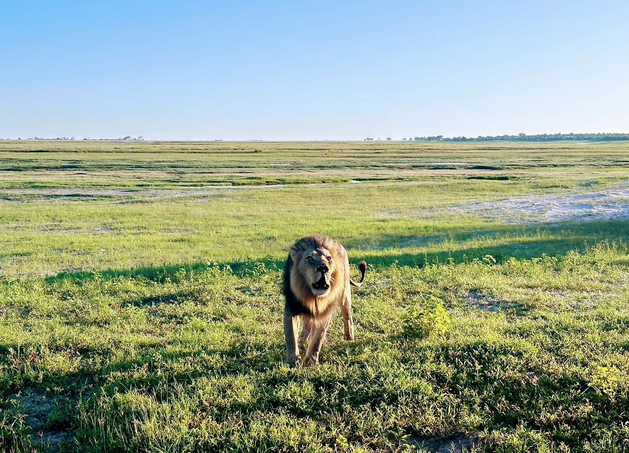 모두가 숨을 죽였다. 지프의 시동도 꺼졌다. 아직 해가 비스듬한 이른 아침 아무도 없는 초원 한가운데, 커다란 수사자가 홀로 앉아있다.