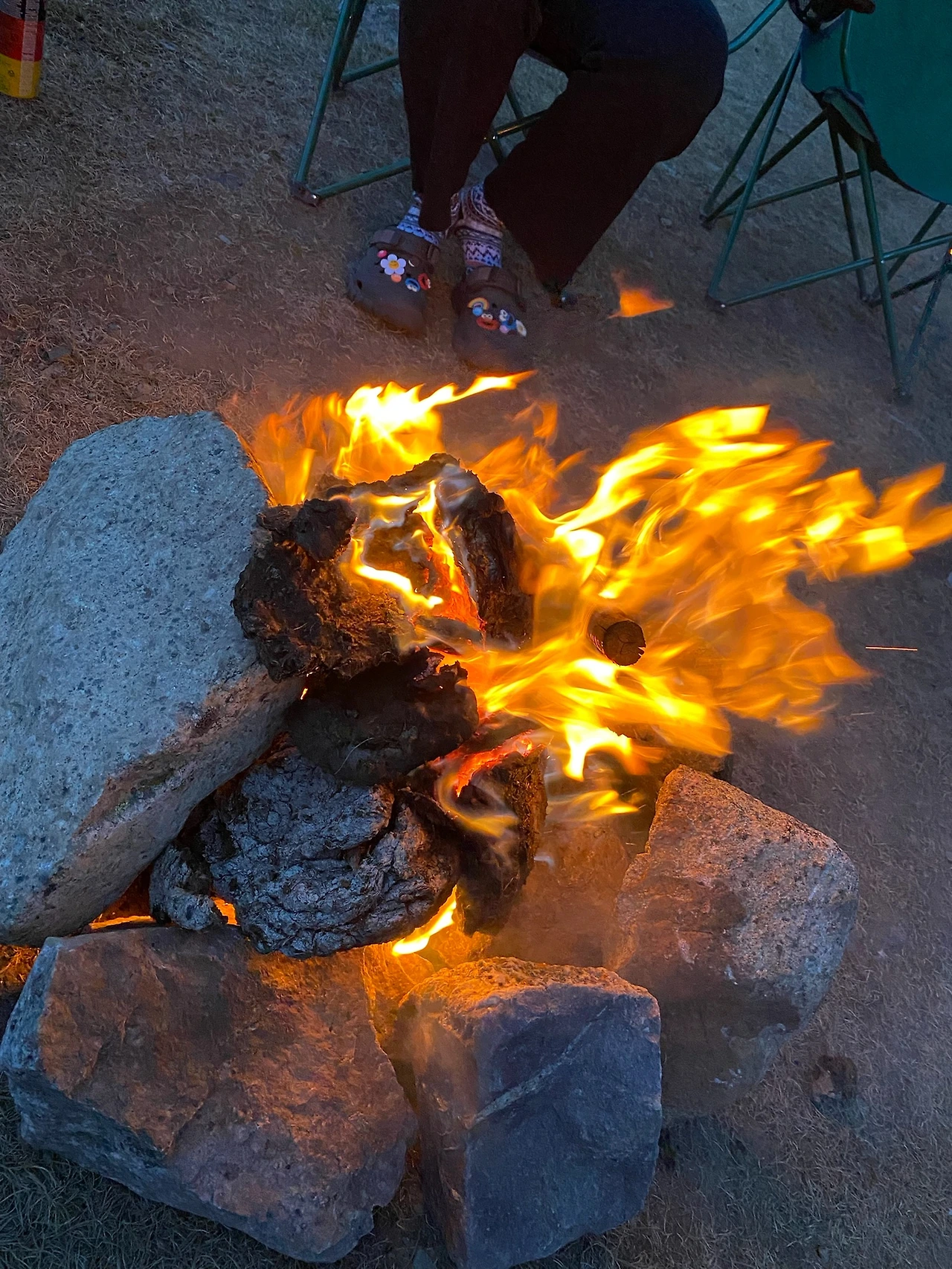 여차저차 구한 땔깜으로 불을 피우고..발을 녹였다.