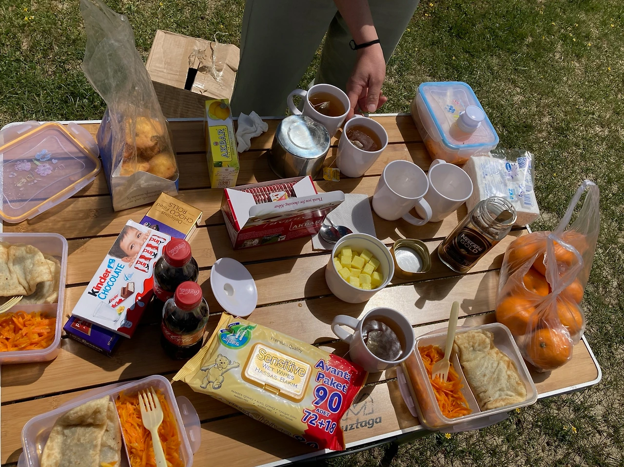 점심은 요리사 언니가 런치박스를 준비해주셨는데, 도시락 안에는 호쇼르랑 당근샐러드가 준비되어 있었고, 후식으로 과일과 차가 준비되었다.
