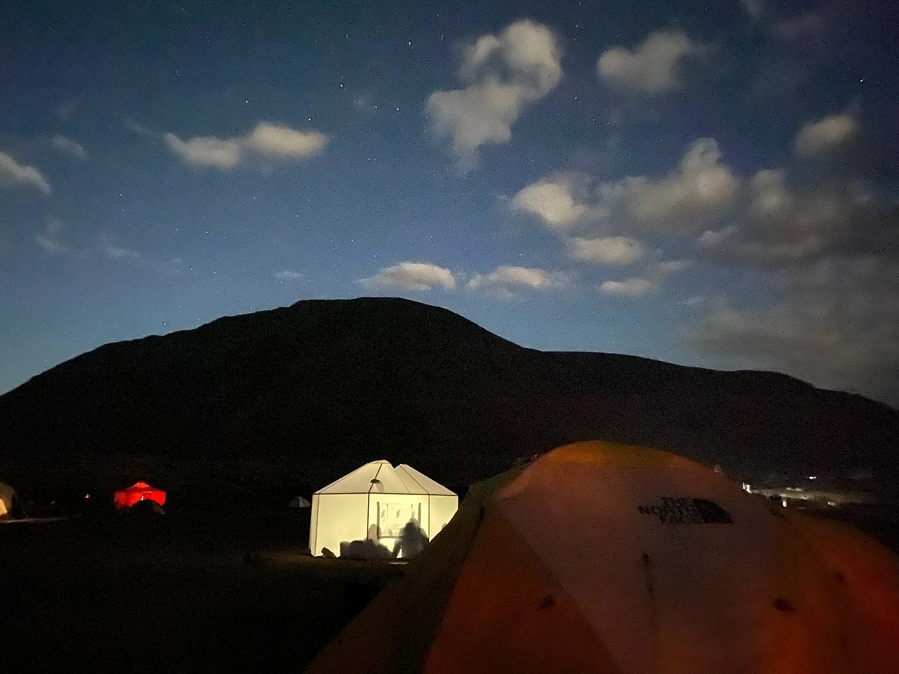 각잡고 산에 오르려고 하는 전문 등산인들은 여기보다 조금 더 깊숙하게 들어간 곳에서 텐트를 치고 등산을 오르는데, 우리는 일반 여행객이므로, 일반 캠프장에 자리를 잡았다. 이 추운 곳에 몽골의 흔하디 흔한 게르 캠프는 얼마 없었고, 대부분 각자 텐트를 가져와서 잠을 잤다. 그리고 이때만큼 몽골의 게르가 그리웠던 적도 없다.