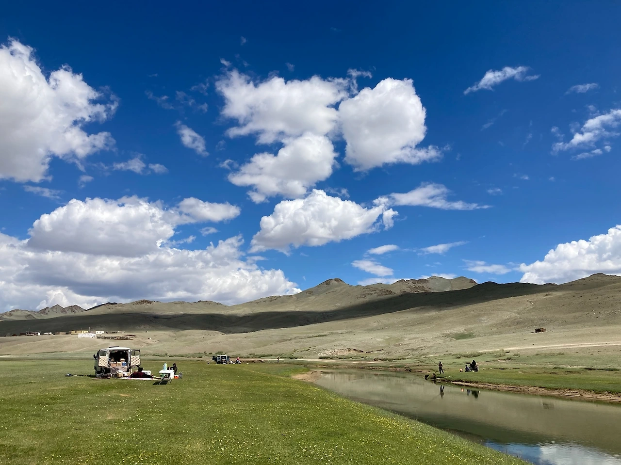점심을 먹고 들판을 달리고 언덕을 넘고 강을 건너서 오늘의 목적지인 알타이 타왕복드 국립공원 베이스캠프 도착!