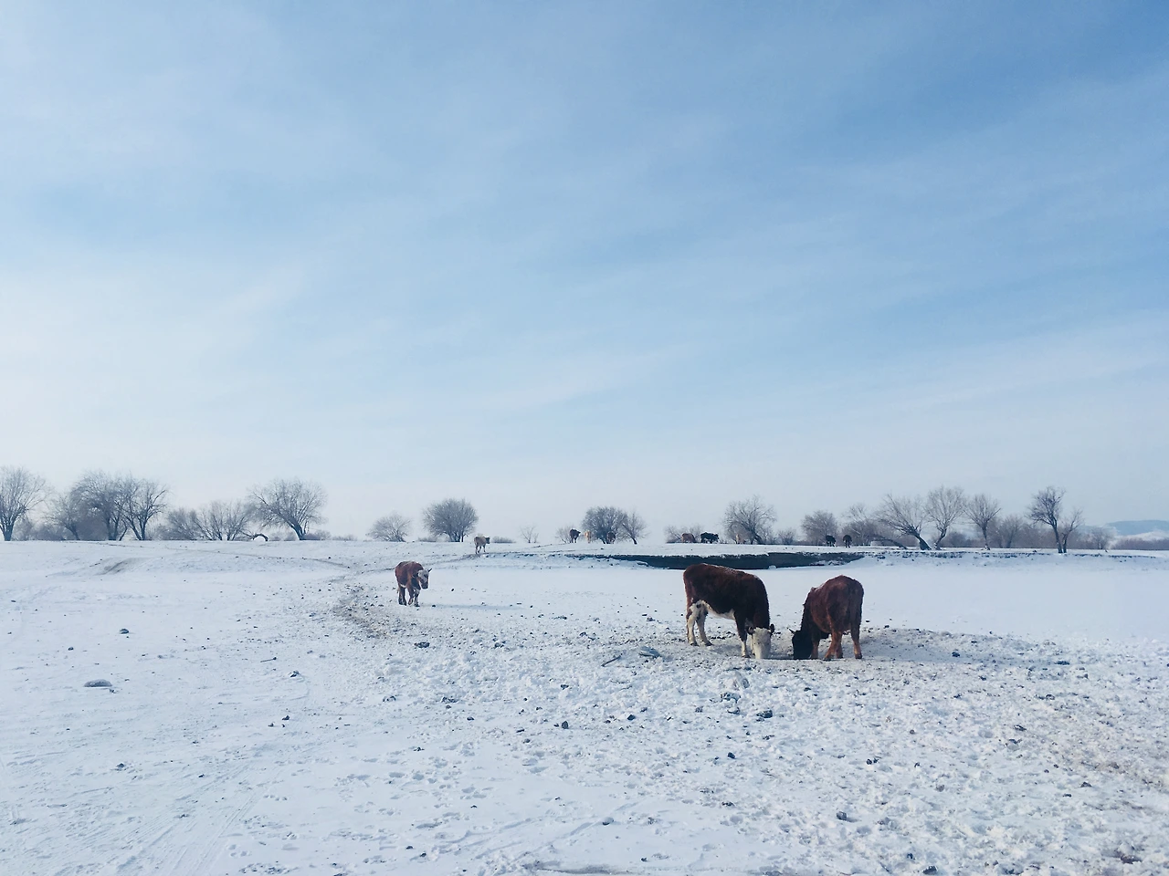하얀 도화지에 크고 작은 검은 패딩입은 마침표 3개가 제멋대로 움직이며 놀다가 저 멀리 소떼를 발견하고는 집합ㅋㅋㅋ