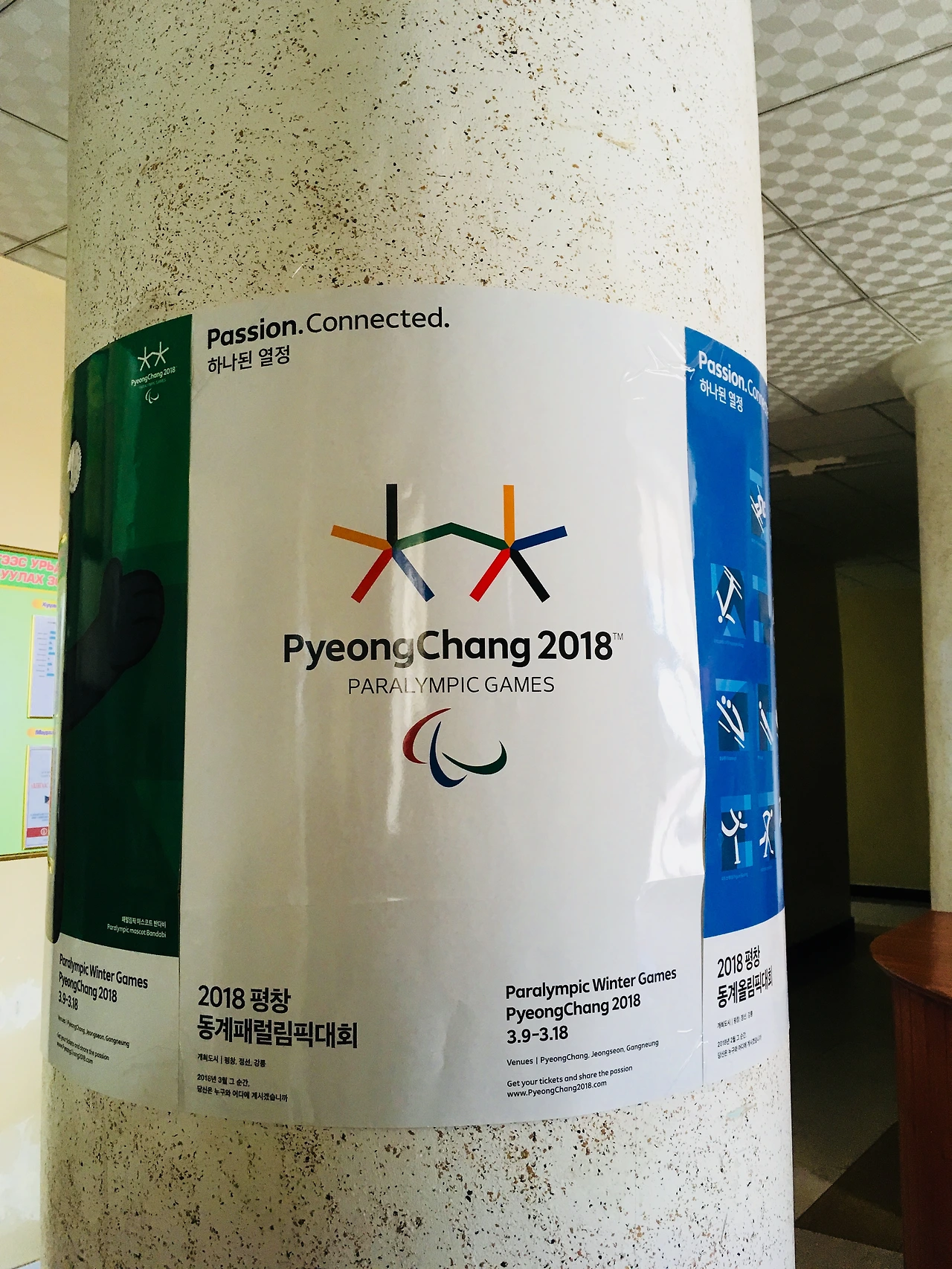 심지어 시청 1층에는 이렇게 평창 동계올림픽 포스터(무려 한국어)가 붙어있었다.
