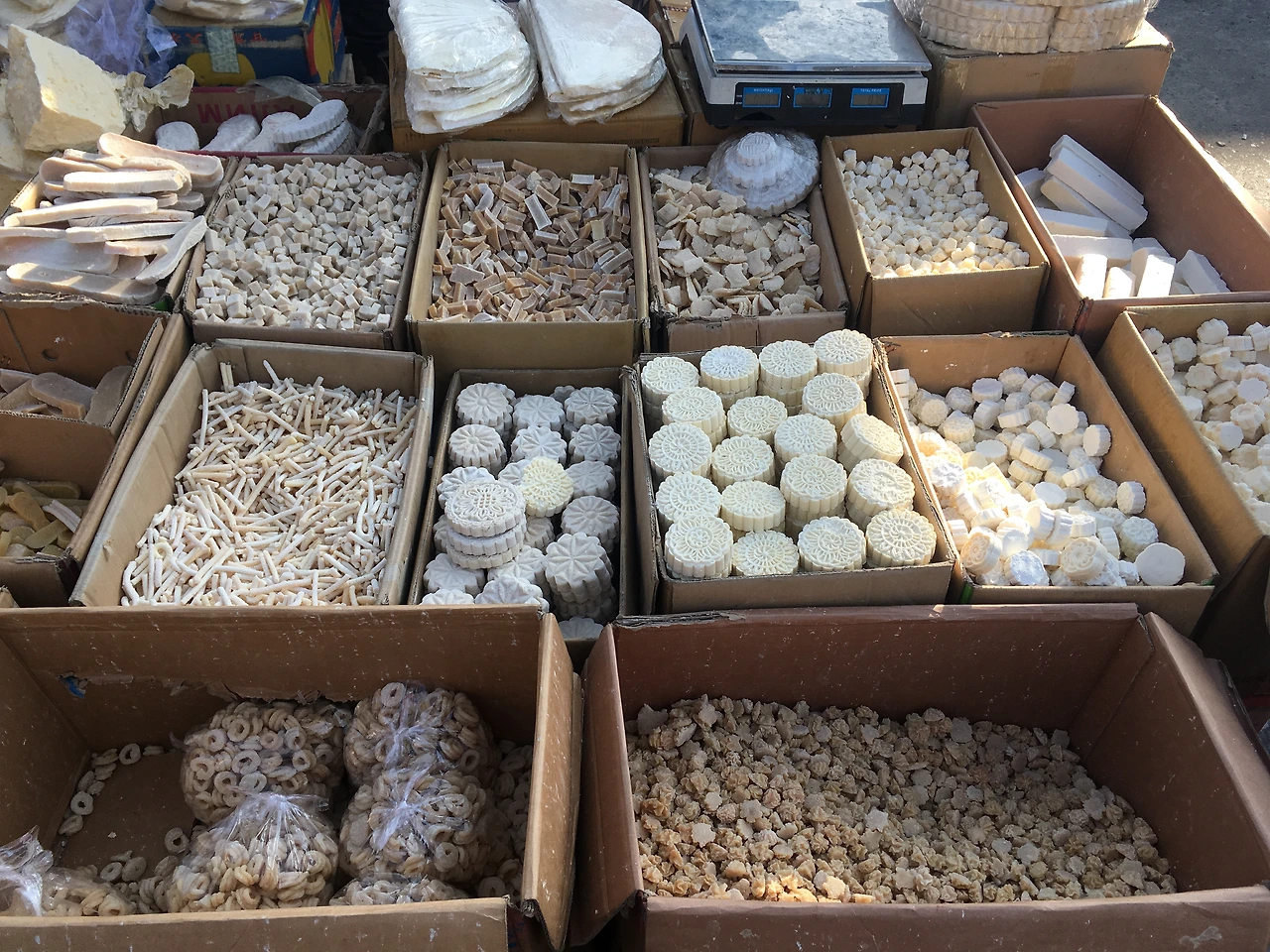 길게 늘어선 장에서 가장 많이 보이는 것은 우유가루로 만든 '아롤'과 양인지 염소인지 잘 구분할 수 없는 목이 잘린 몸통이다. 매끈한 덩어리들은 저 멀리서도 한눈에 시선을 사로잡았다.