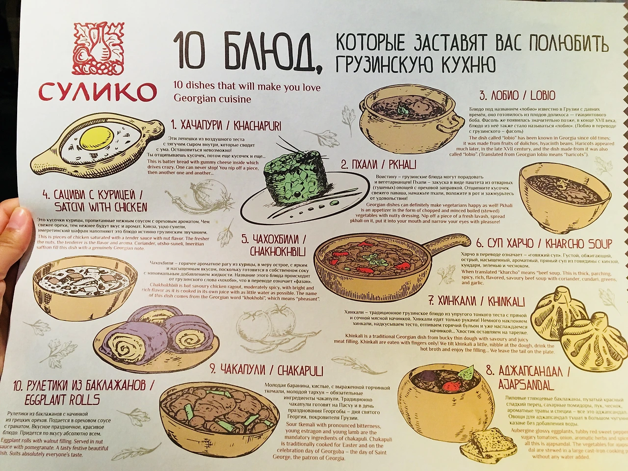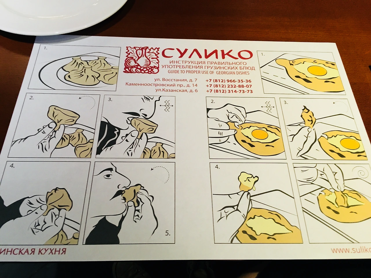 음식은 전체적으로 짰고, 밀가루와 고기가 주 재료라 아주 배가 불렀다. 정작 음식 사진은 없고 식탁에 깔렸어 전통 음식과 먹는 법이 적혀있던 종이만 카메라에 남아있었다.