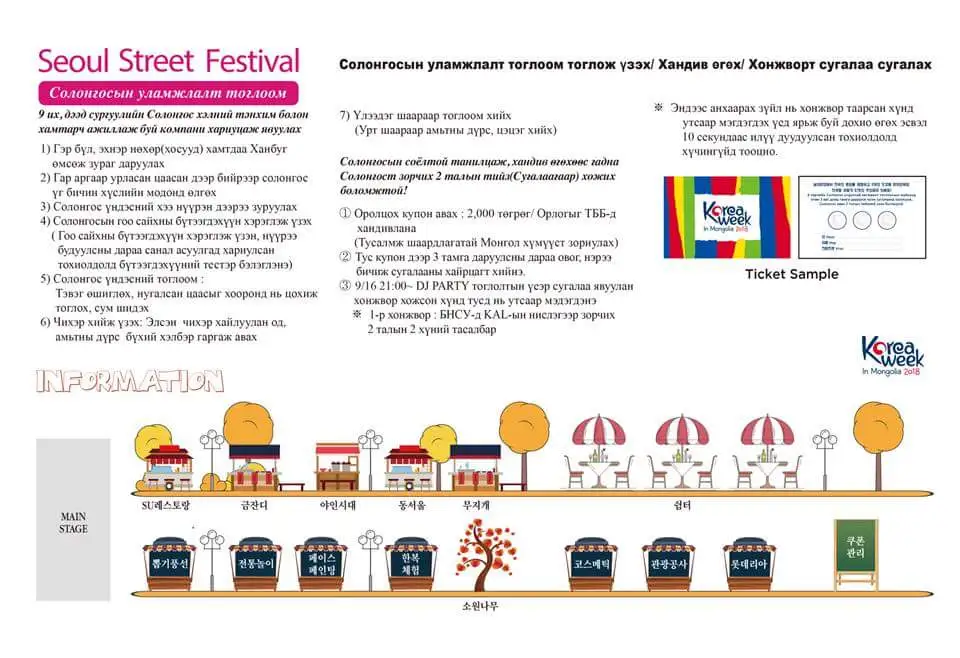 서울의 거리 한쪽 끝에는 공연 무대가 설치되어 있었다. 이 위에서는 한국과 몽골 관계자들의 개회사로 시작해 각국의 전통공연이 열렸다.