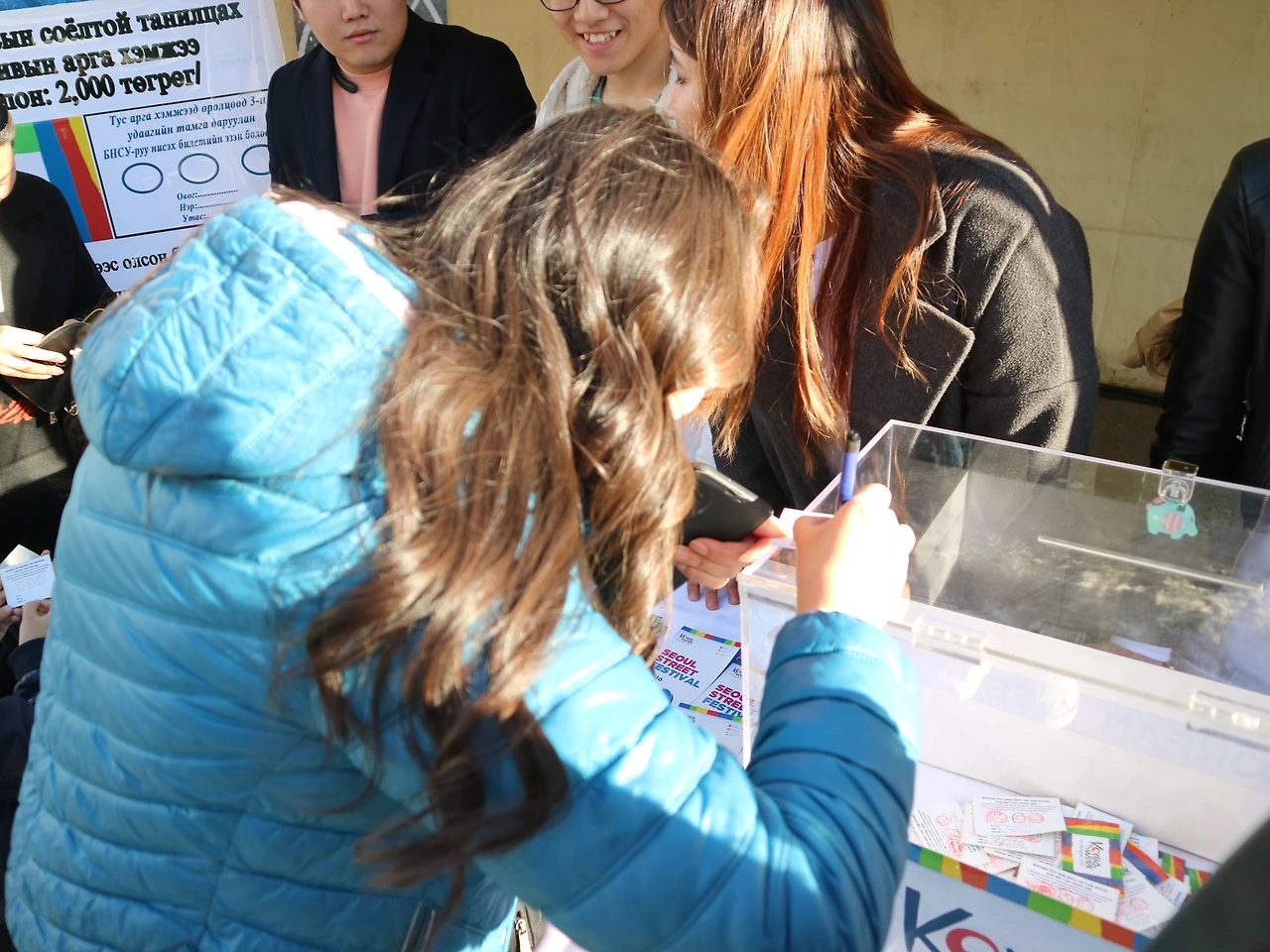 좀 더 적극적으로 행사에 참여하고 싶은 사람들은 2000투그릭(한화 약 1000원)을 내고 라플 추첨을 할 수 있었다.