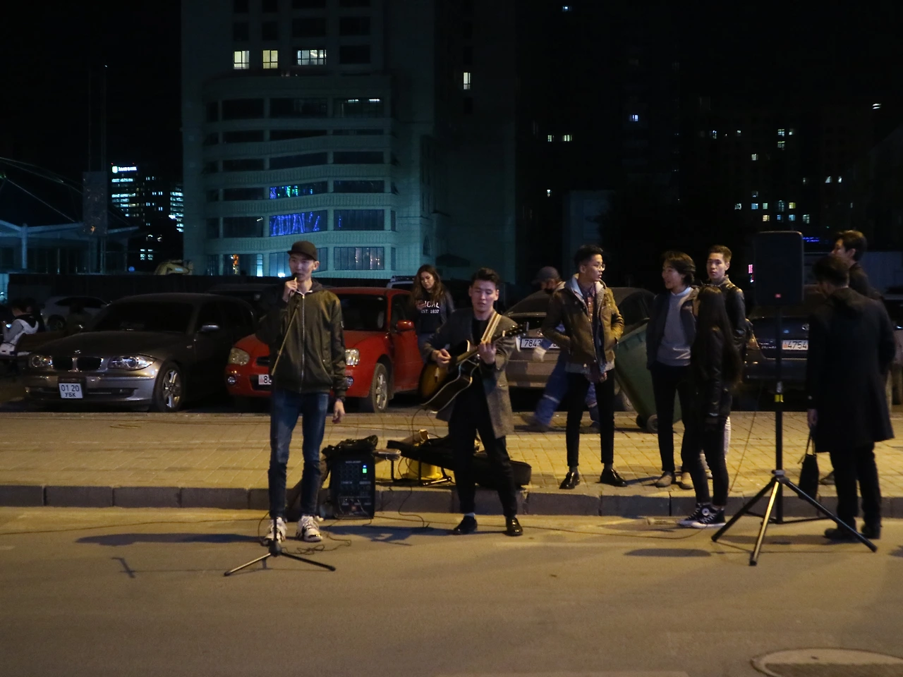 서울의 거리 입구 쪽에서 막 버스킹을 시작하고 있었다. 처음에는 사람들이 많지 않았는데, 마지막에는 구름 떼같이 몰려서 이들의 노래를 감상했다.